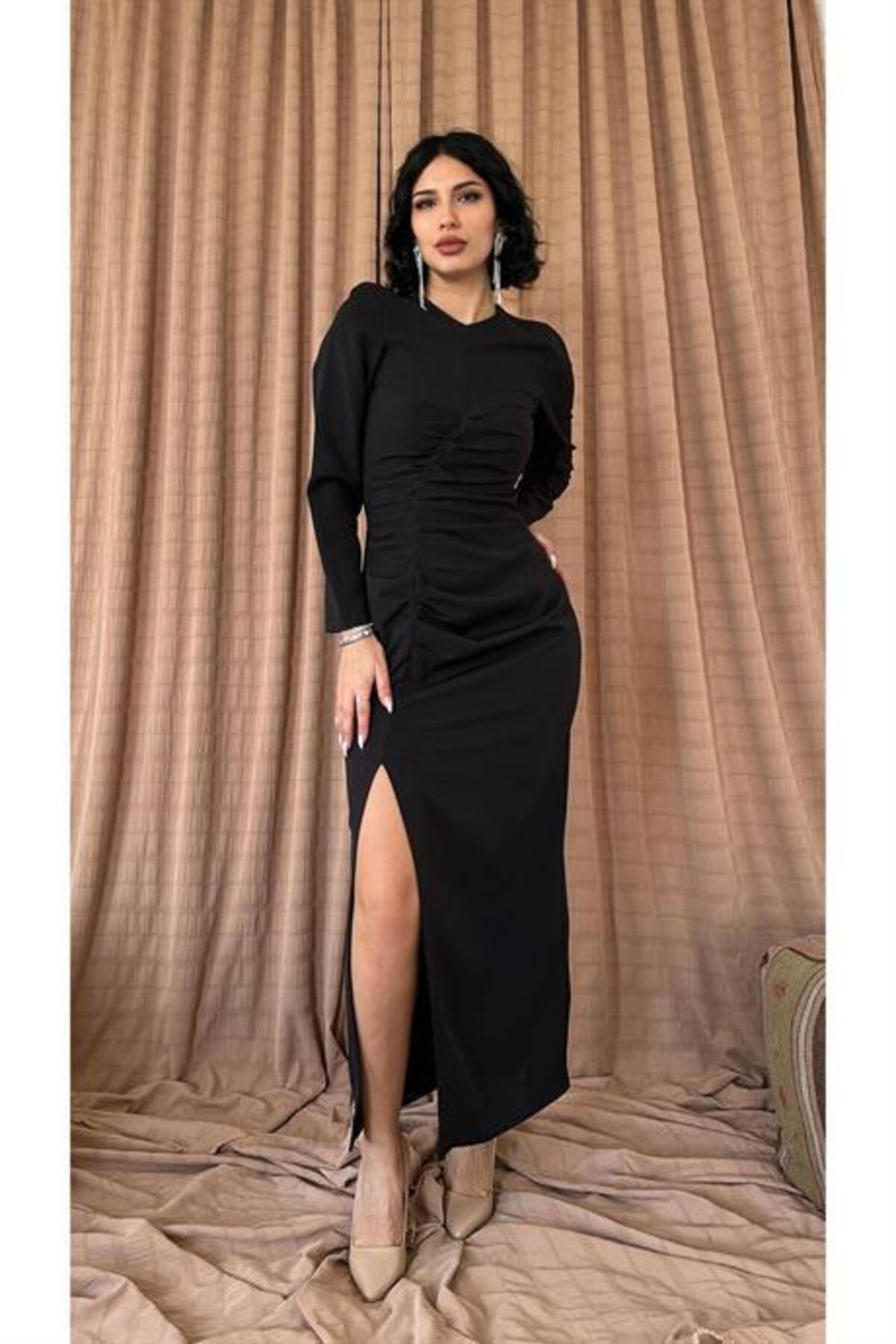 • Markano Pileli Yıtmaçlı Uzun Elbise