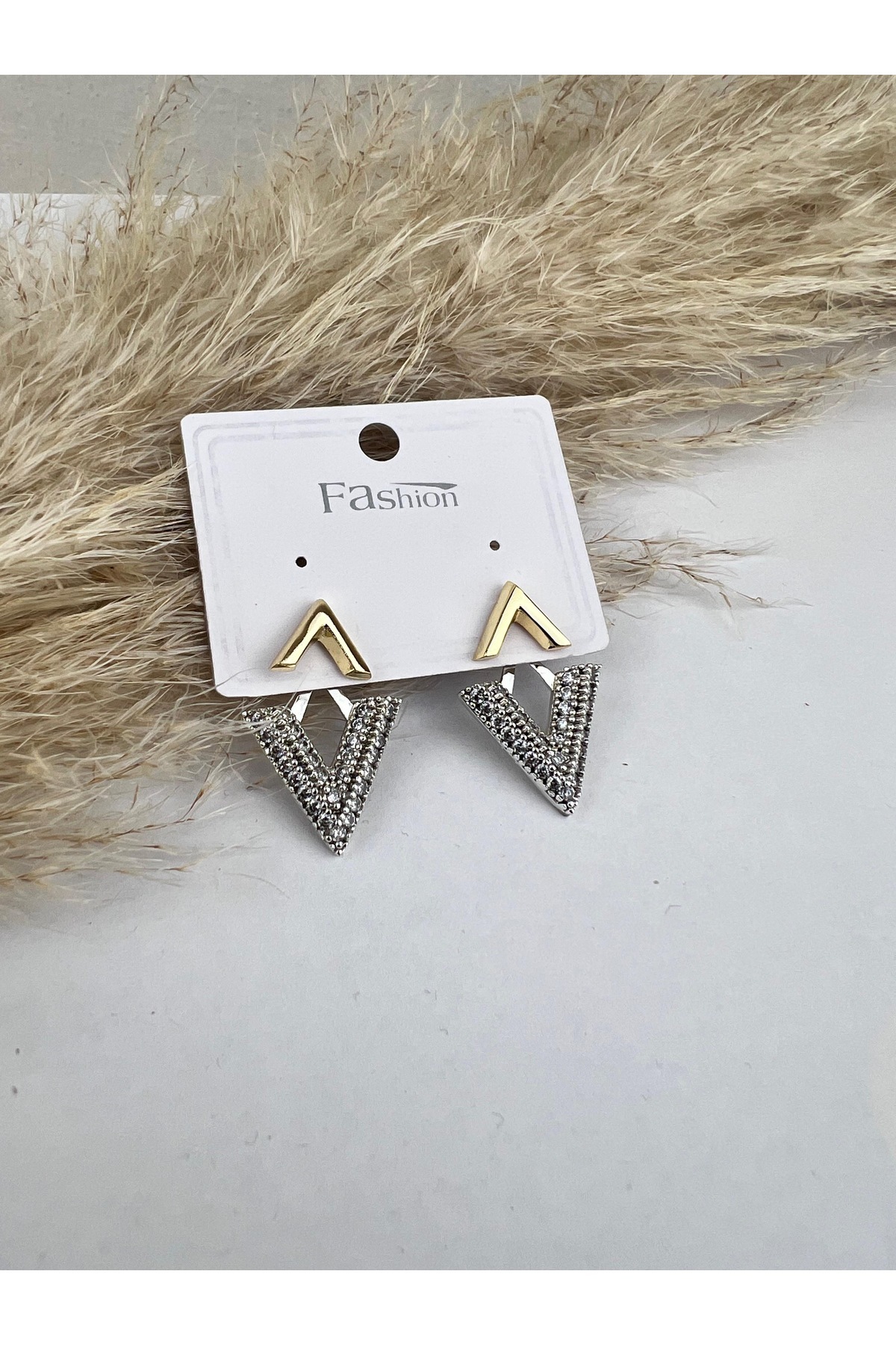 - Zarif tasarımıyla dikkat çeken V model taşlı kadın küpe, her türlü kıyafetle uyum sağlar.
