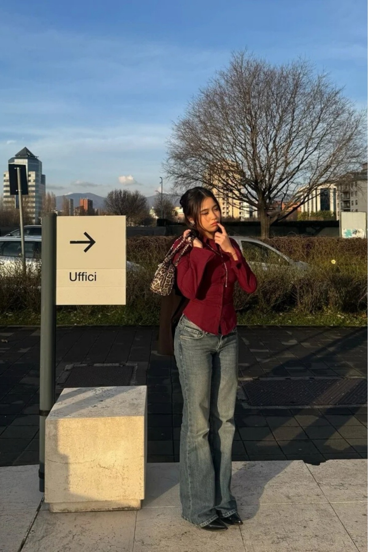 Bordo Uzun Kollu Vücuda Oturan Gömlek HL150