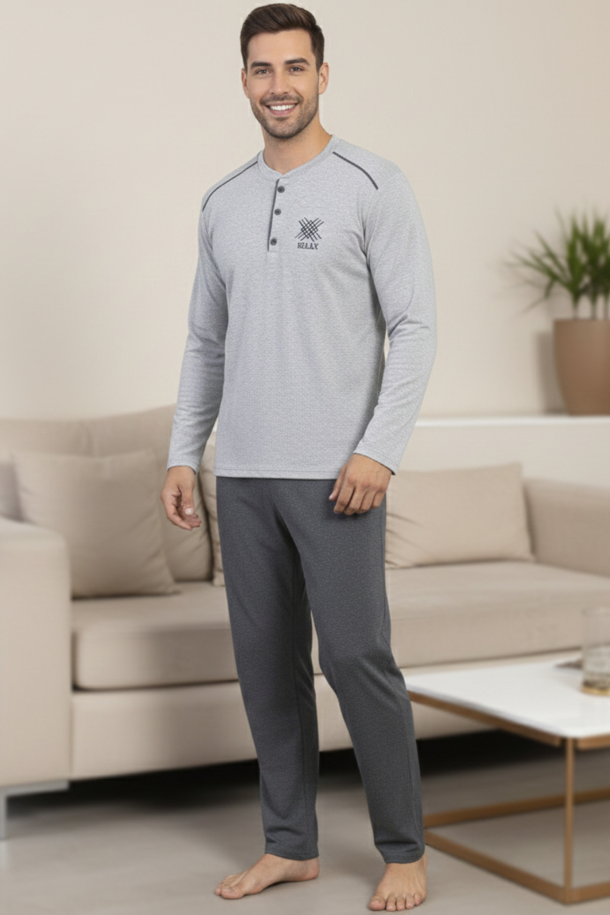 • Yumuşacık dokusu ve nefes alan pamuklu kumaşıyla günün tüm yorgunluğunu unutturan Pamuklu Erkek Pijama Takımı, rahatlık ve şıklığı bir arada sunar.