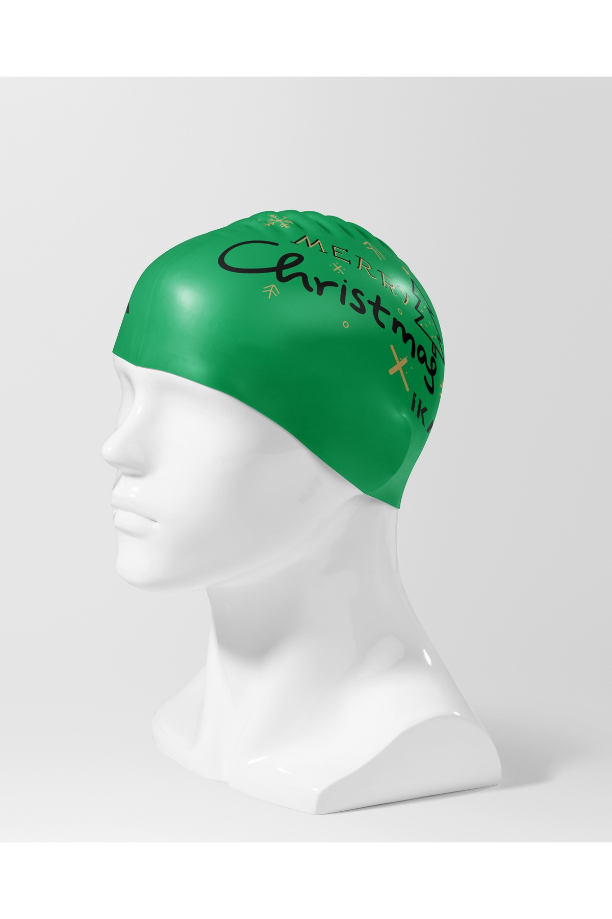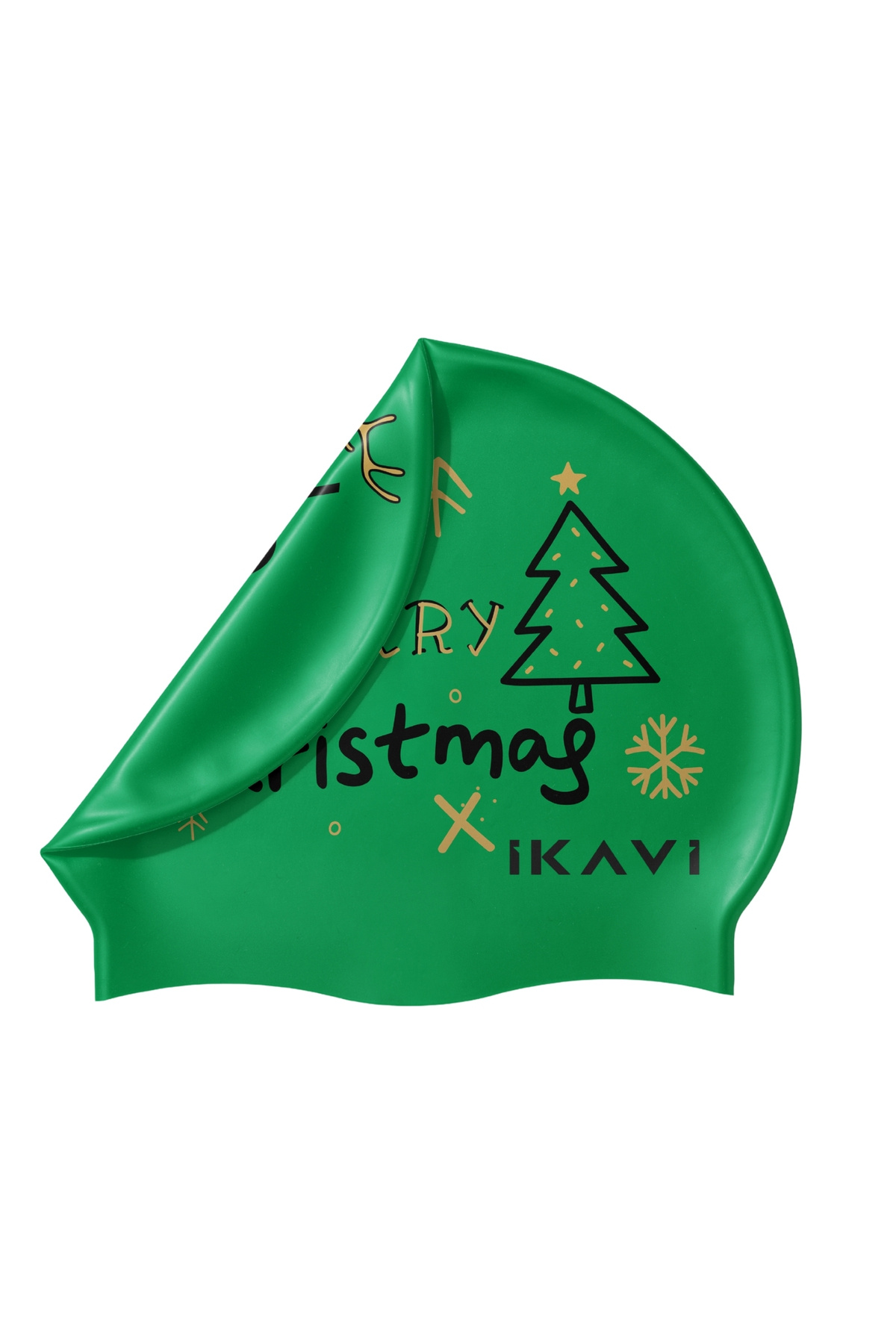 Yılbaşı Temalı Silikon Bone – Yeşil Geyik Desenli – Çift Taraflı Havuz Bonesi (Unisex)