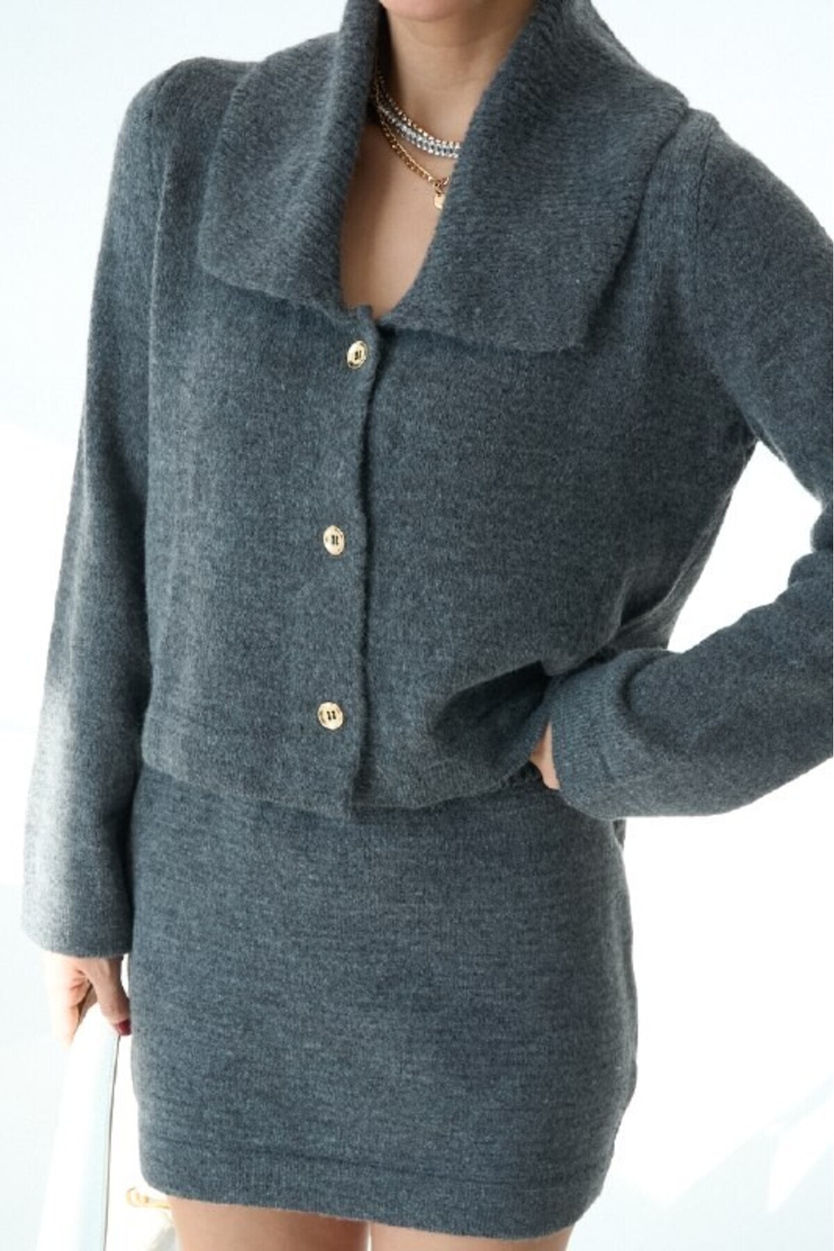 Yakalı ve Kemer Görünümlü Mini Triko Takım (Tek Parça Elbise)
