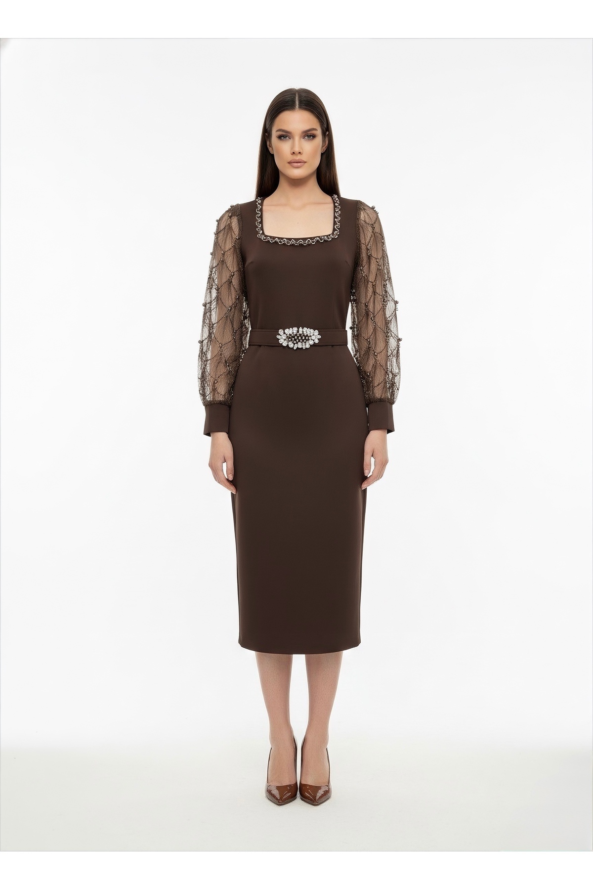 - Kemer detayı belinizi zarifçe vurgular ve feminen bir siluet oluşturur.