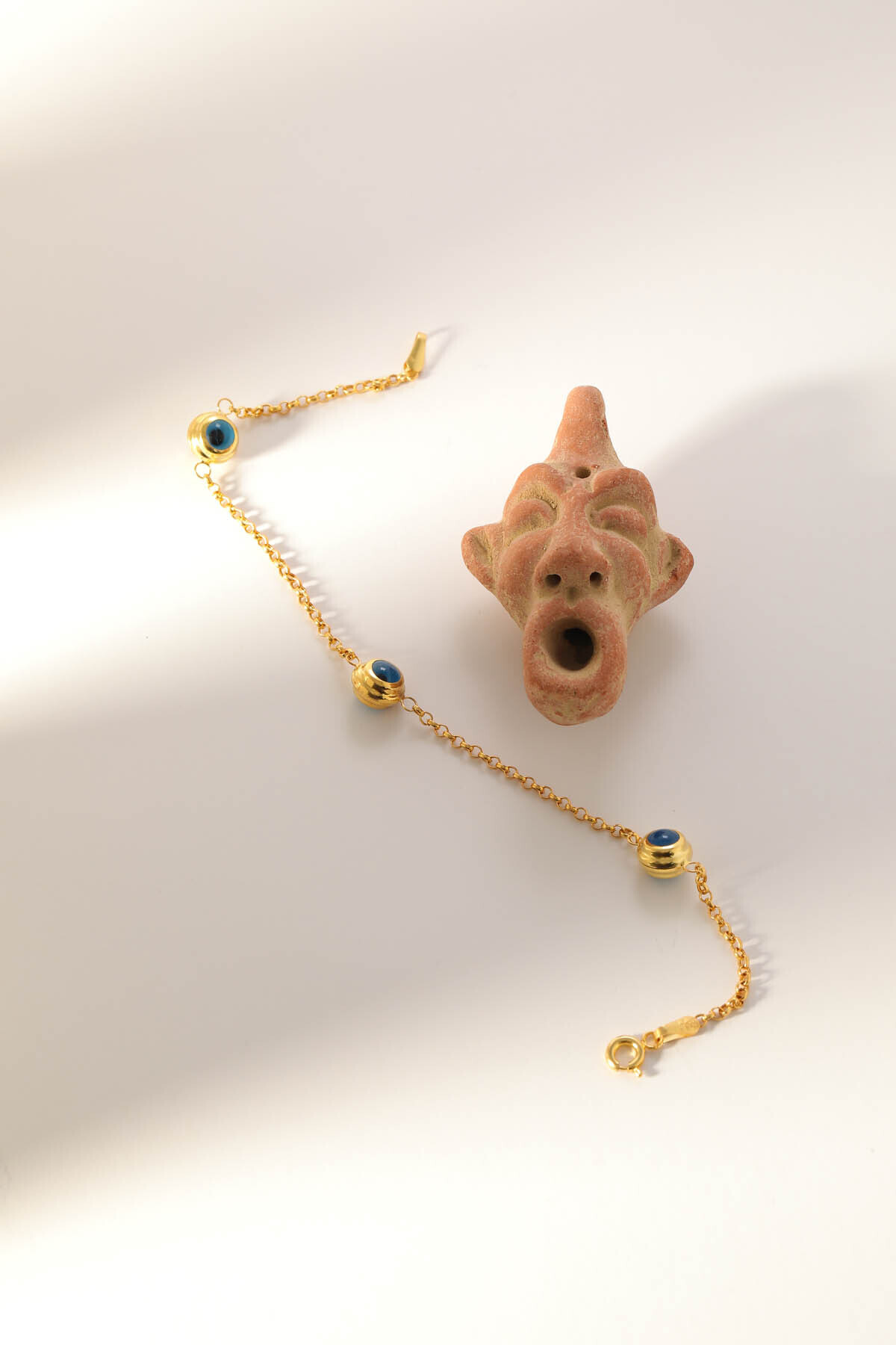 Doc Göz Nazar Boncuklu Bileklik 14 Ayar Altın