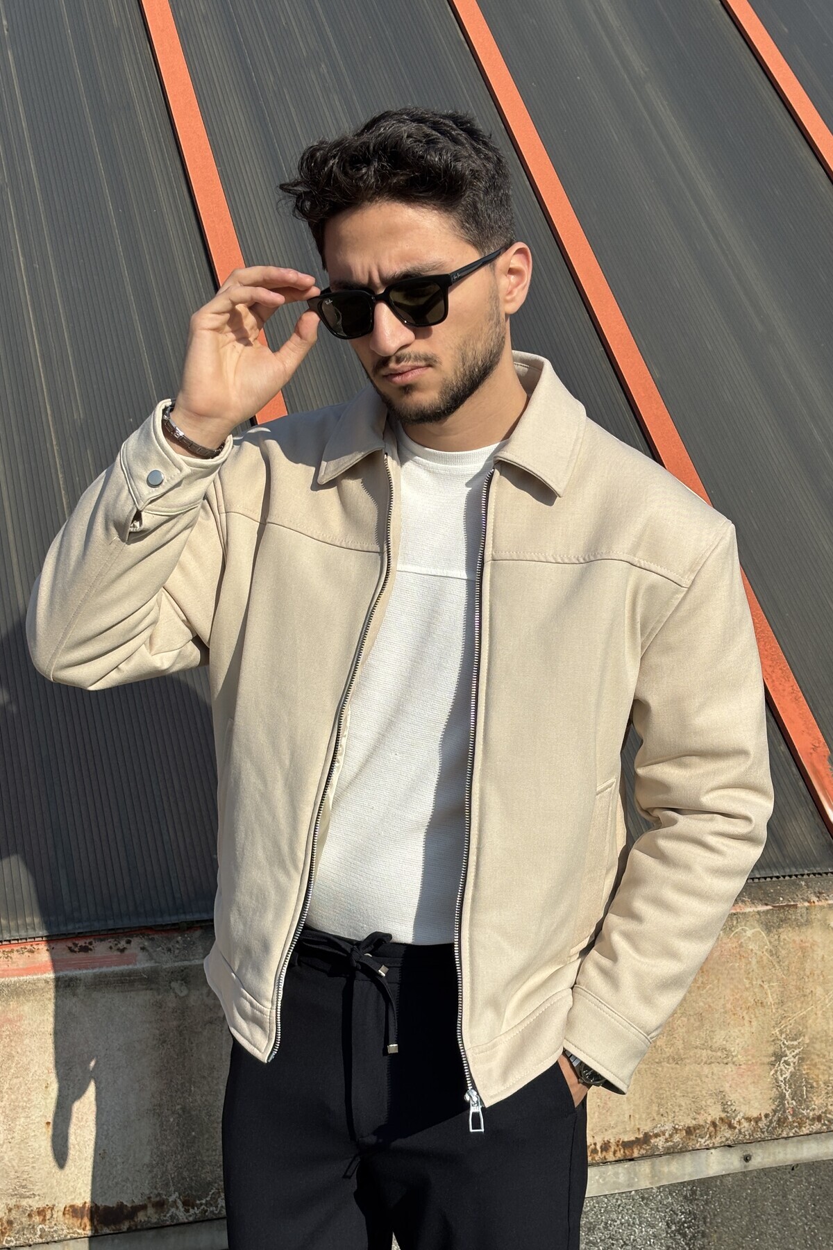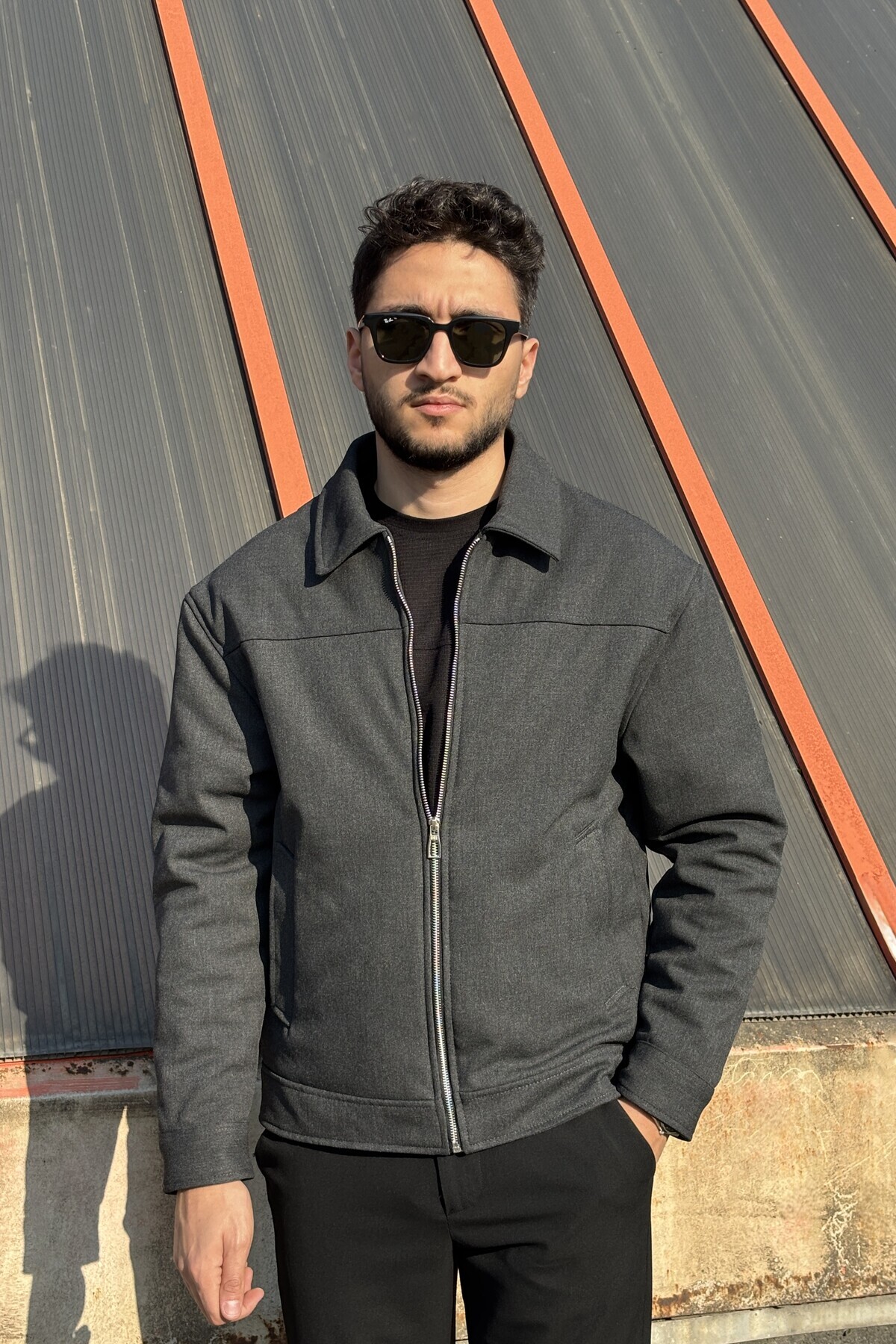 Erkek, standart-fit, Gömlek yaka, metal fermuarlı, Old Money Culture, Yarı mont, Ceket 644. Mankenimiz 186 Cm boy ve 80 Kg ölçülerinde olup L beden giymiştir.