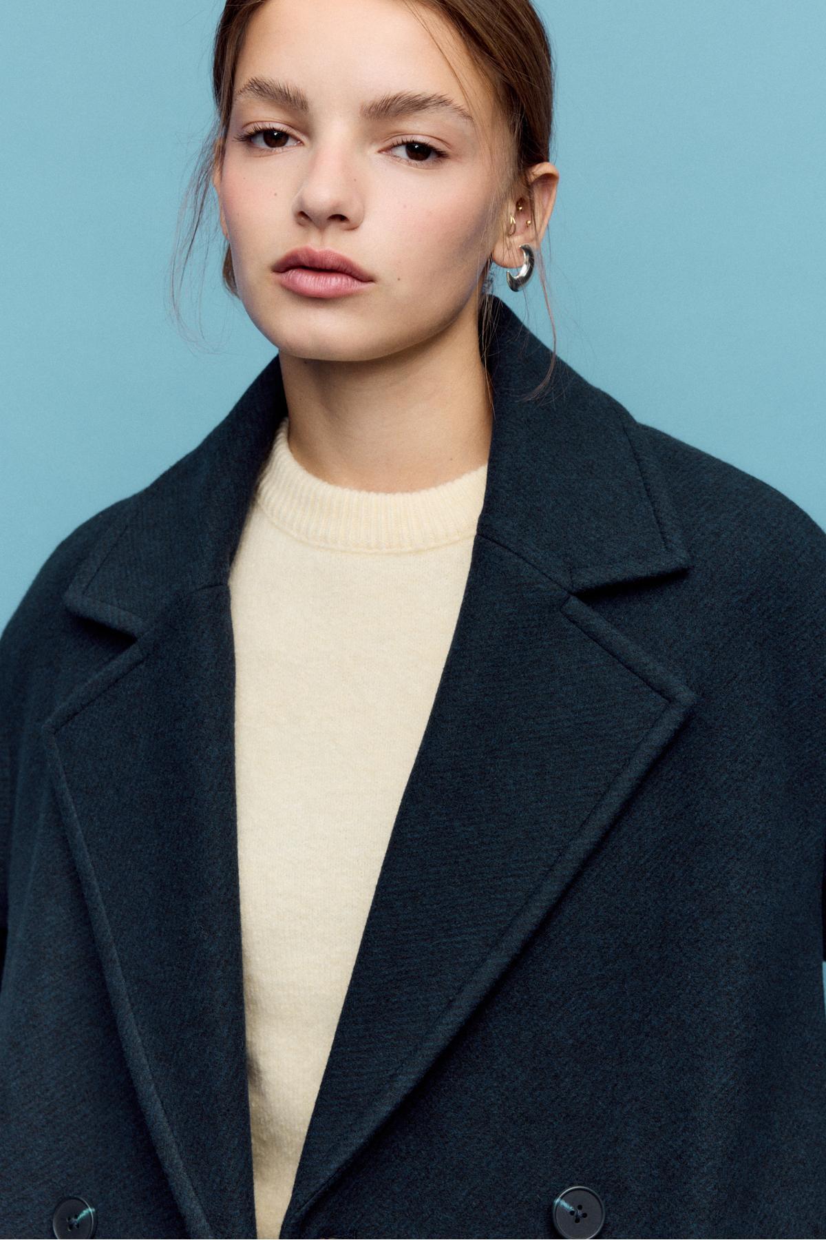 Katlı yakalı, uzun, yumuşak dokulu kaban.