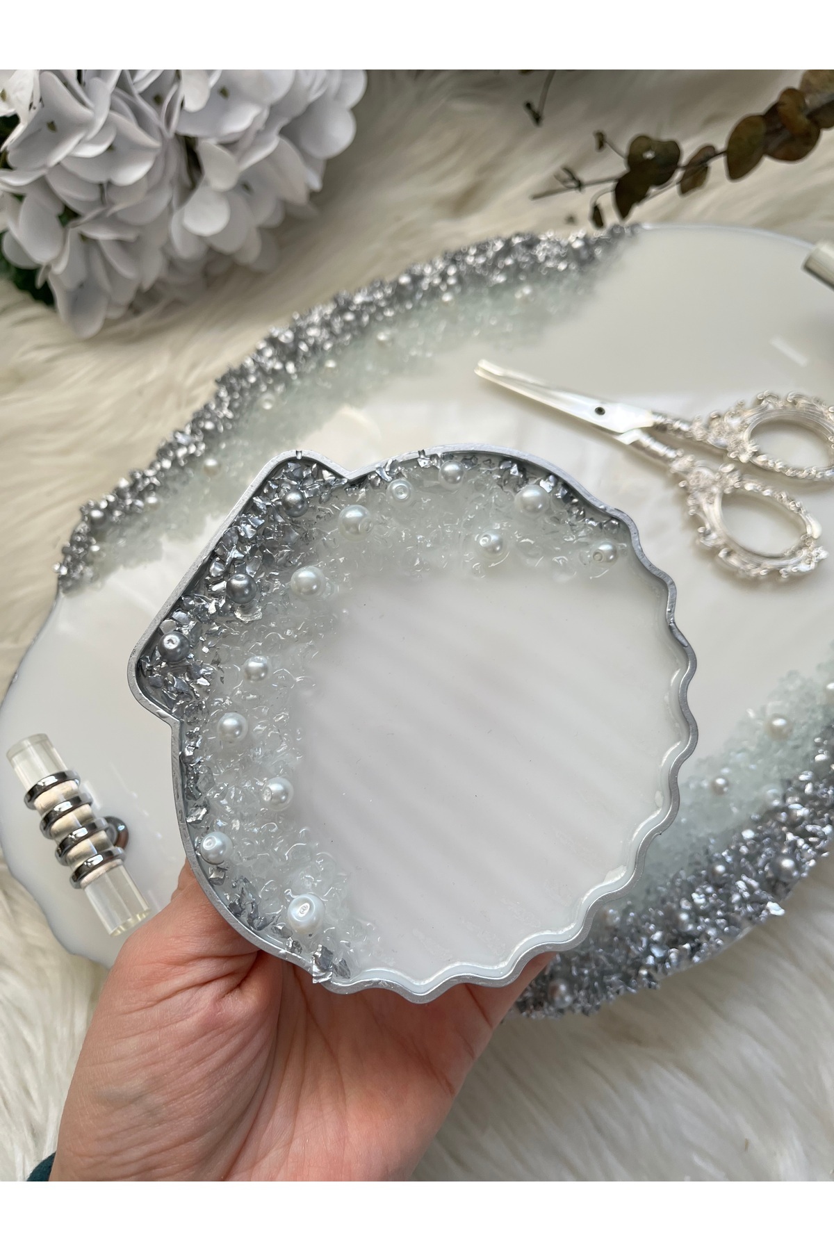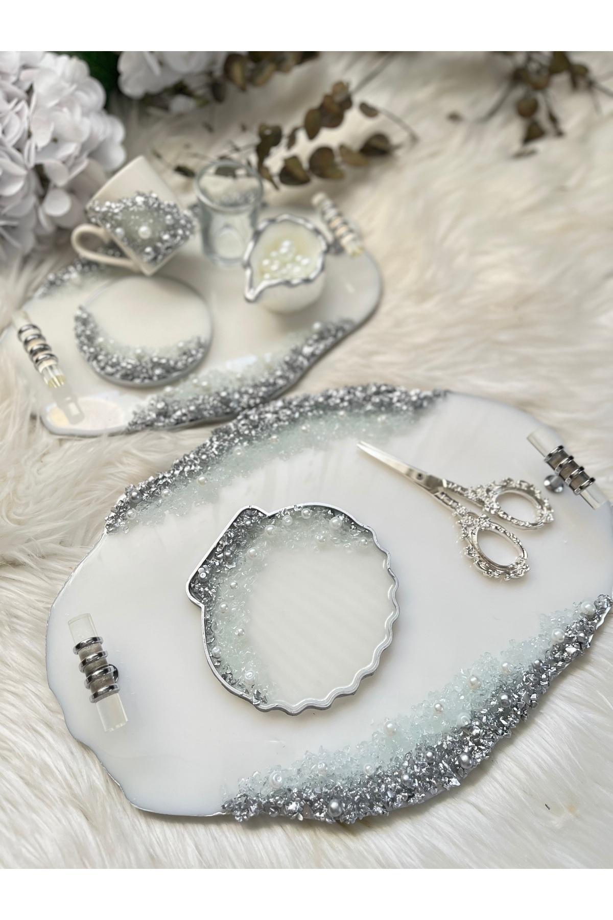 Epoksi Nişan Seti taş+İnci gümüş