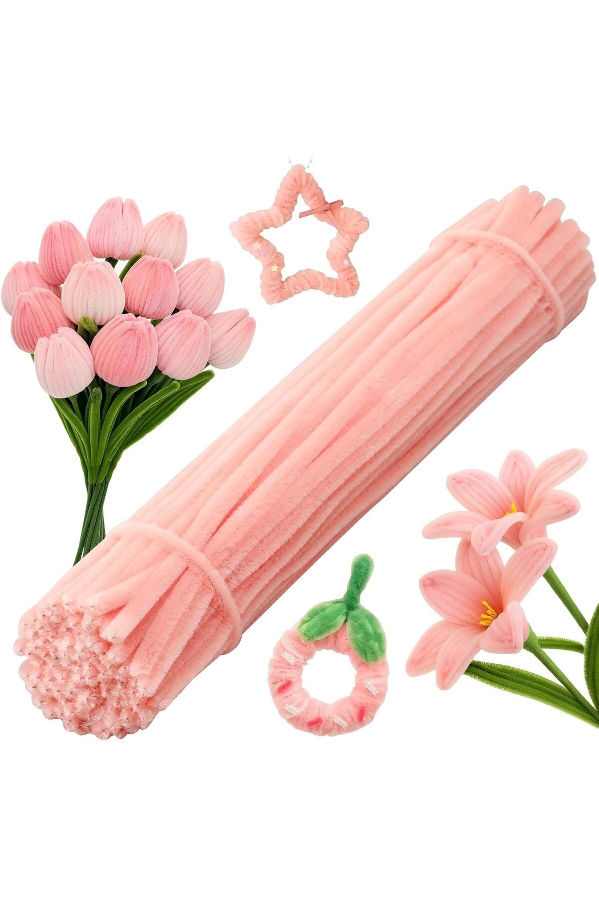 3'lü Şönil Set Pastel Pembe (50) , Beyaz (25) , Ordu Yeşili (25) Şönil ,Çiçek Yapımına Uygun Tüylü
