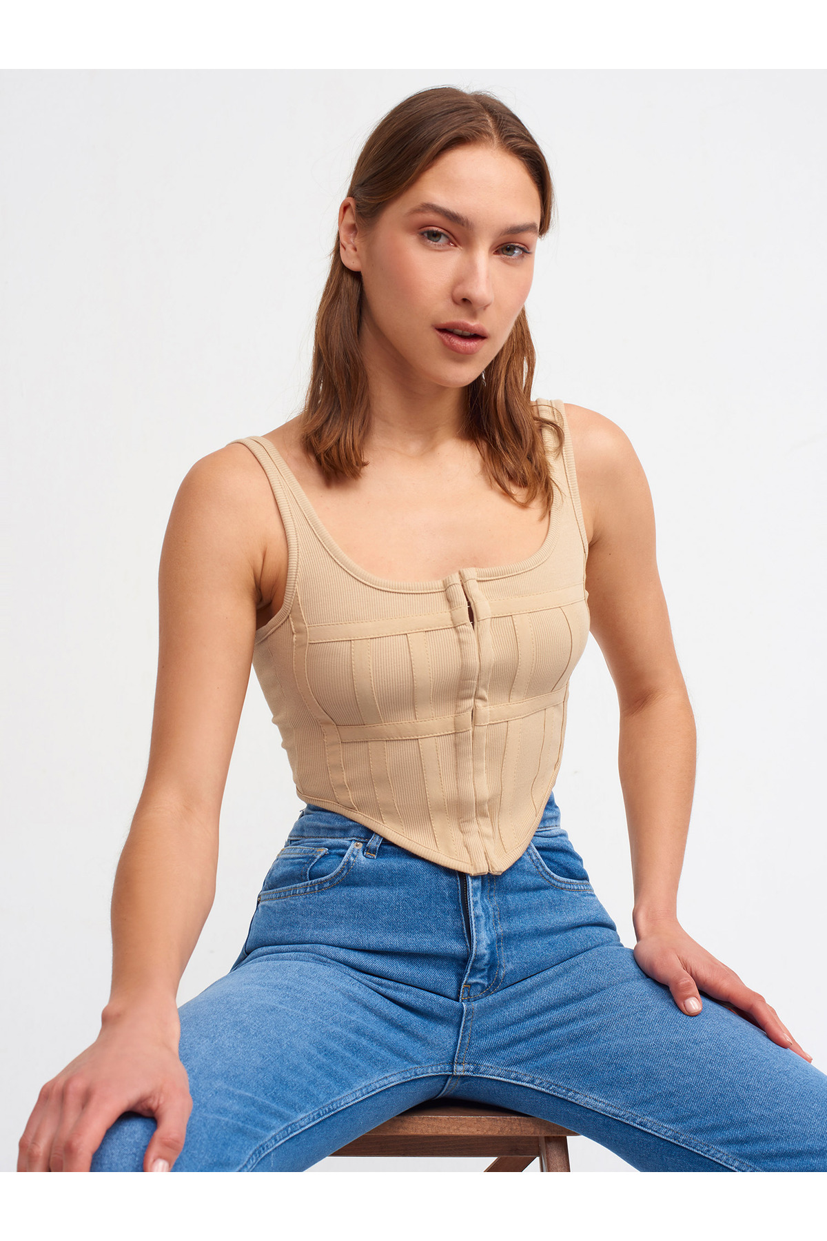 Korse detayı, vücudu şekillendirirken aynı zamanda zarif bir görünüm sağlar.