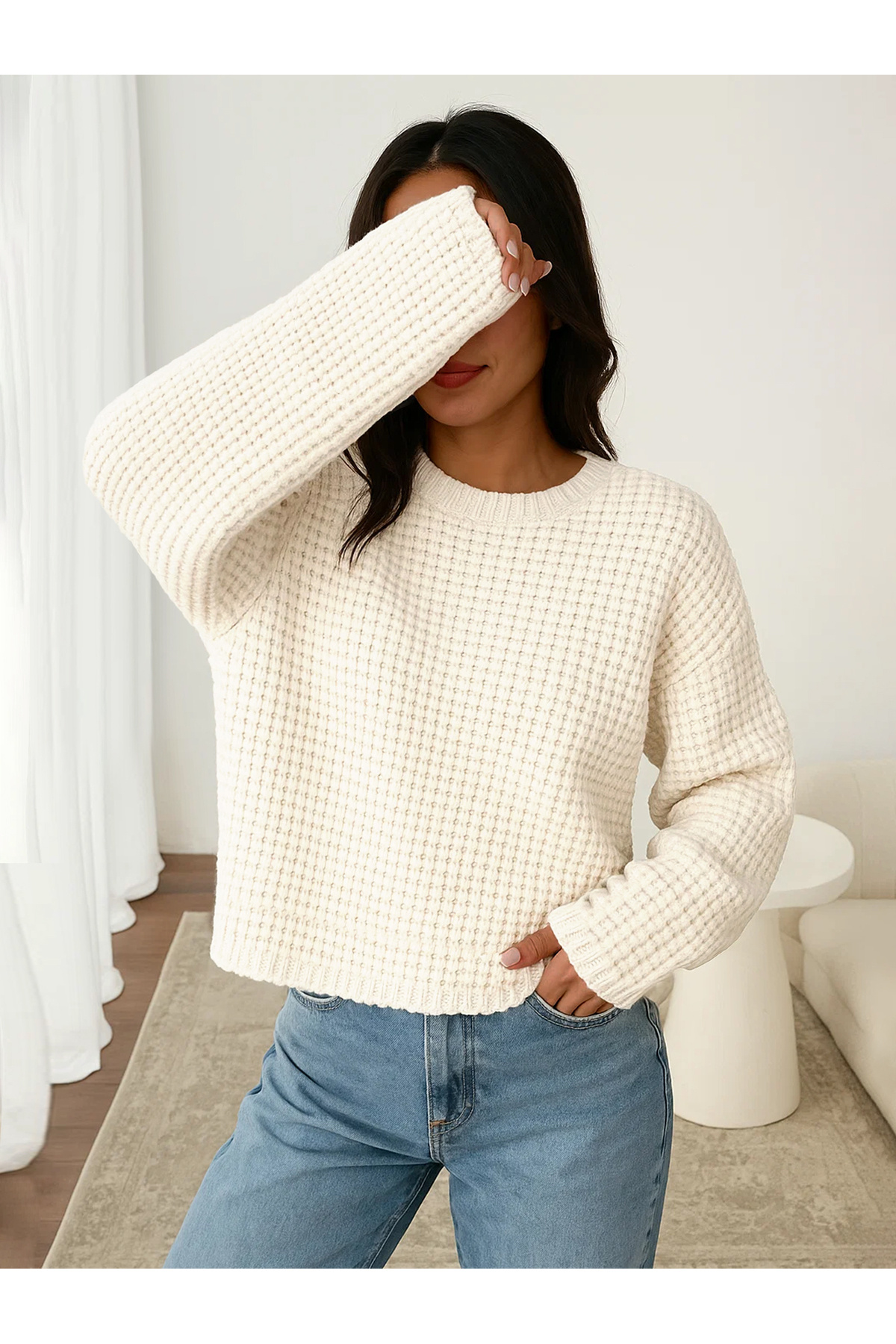 Kadın Yumuşak Petek Dokulu Triko Kazak Rahat Kalıp Basic Örgü Ofis Günlük Kışlık