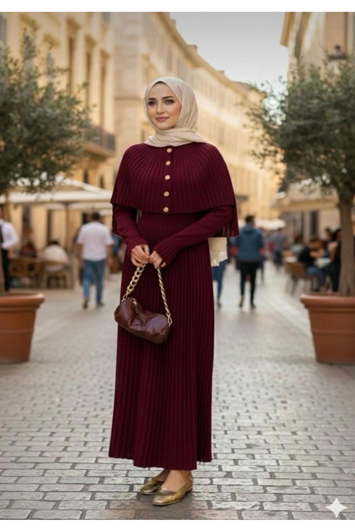 • Kadın Pelerin Detaylı Uzun Triko Elbise