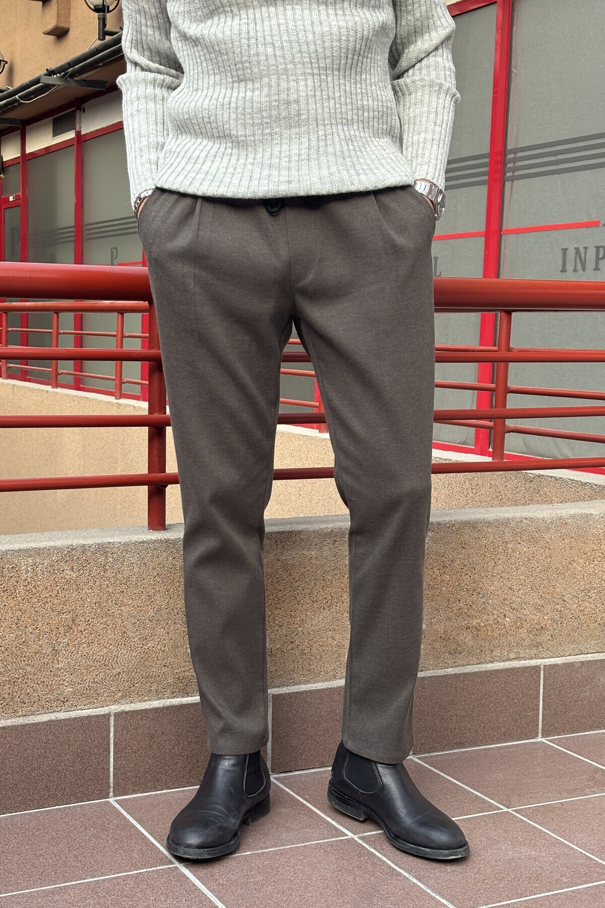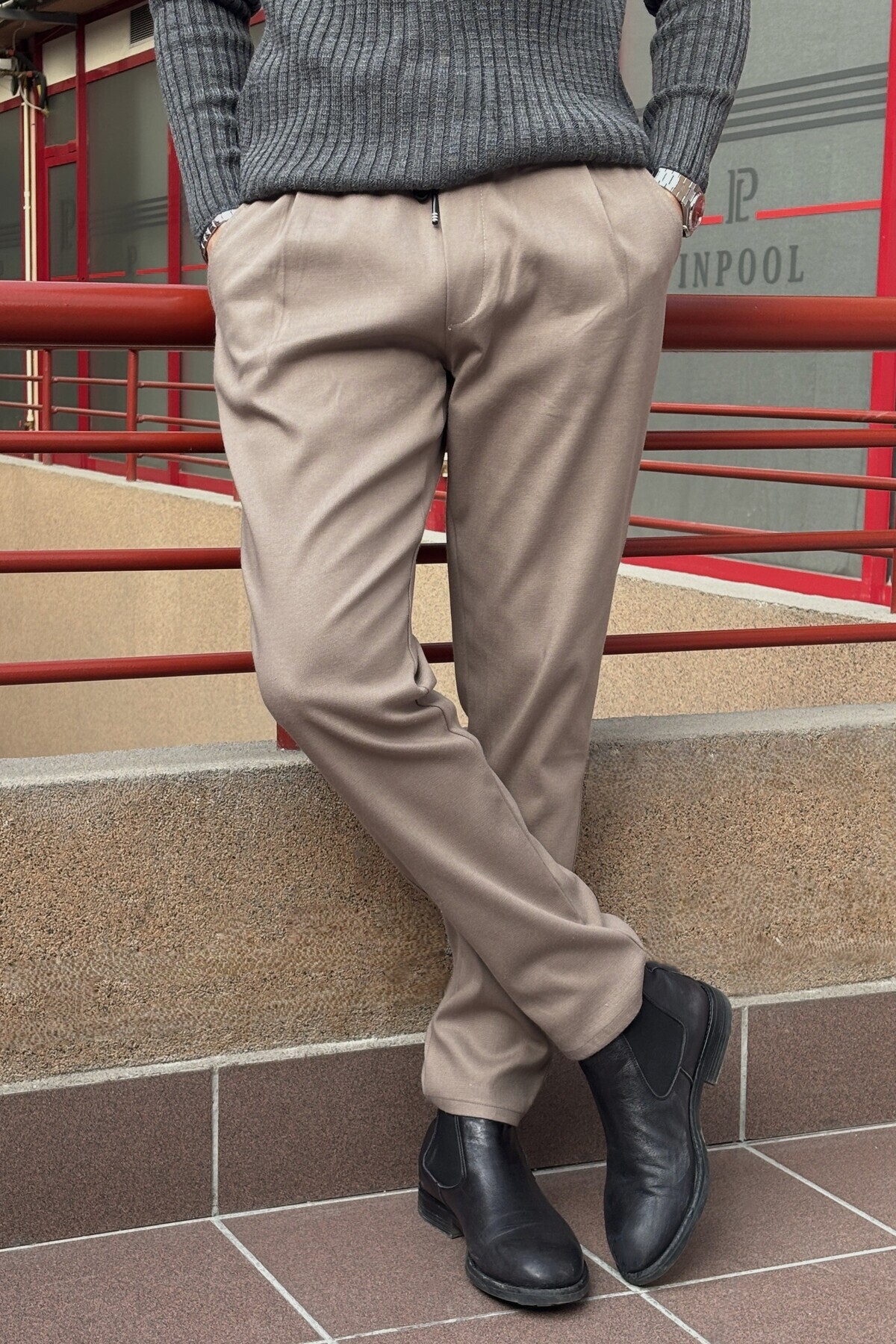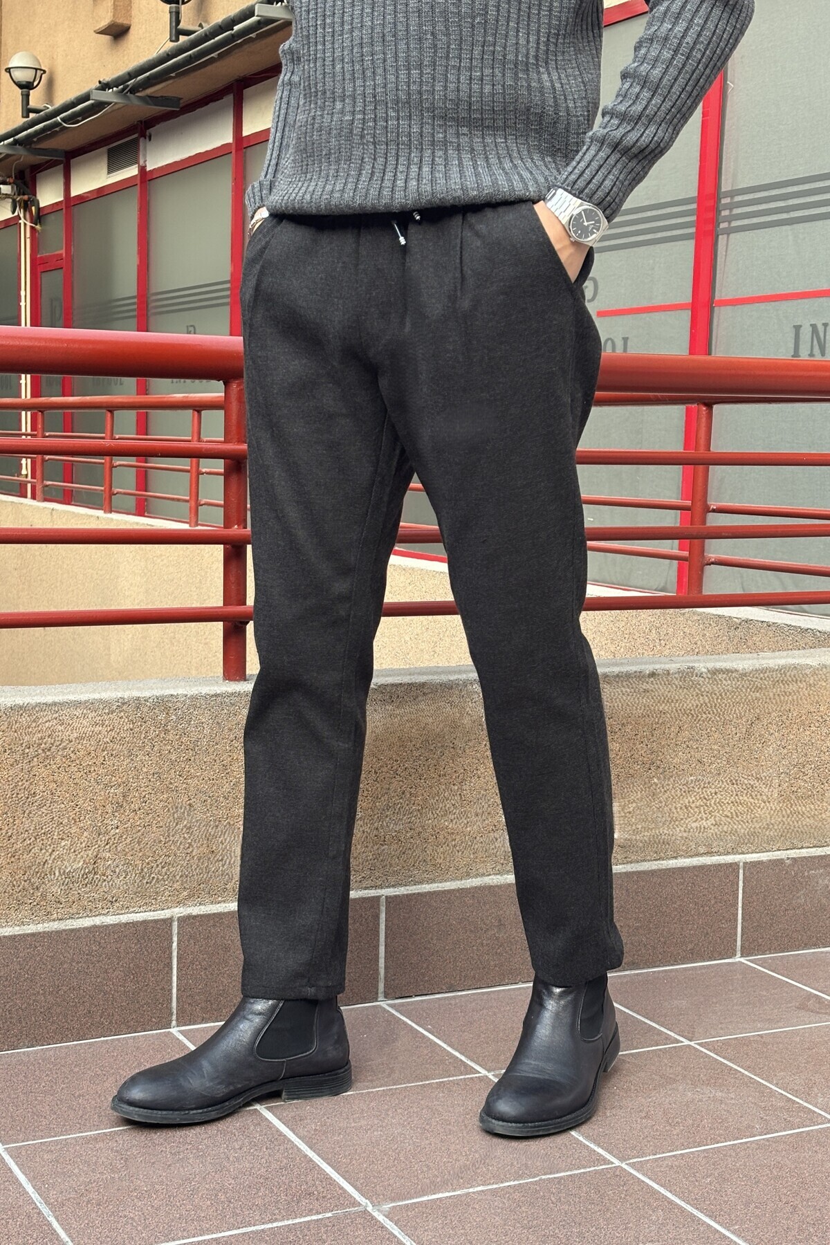 Erkek, pile detaylı, bel lastikli, regular-fit, kışlık ve baharlık pantolon 25INP271DUZ