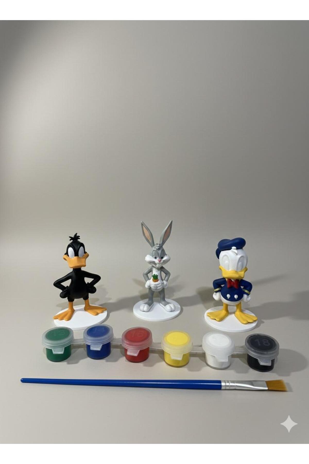 Set içerisinde yer alan Daffy, Bugs ve Donald karakterlerinin üç boyutlu figürleri