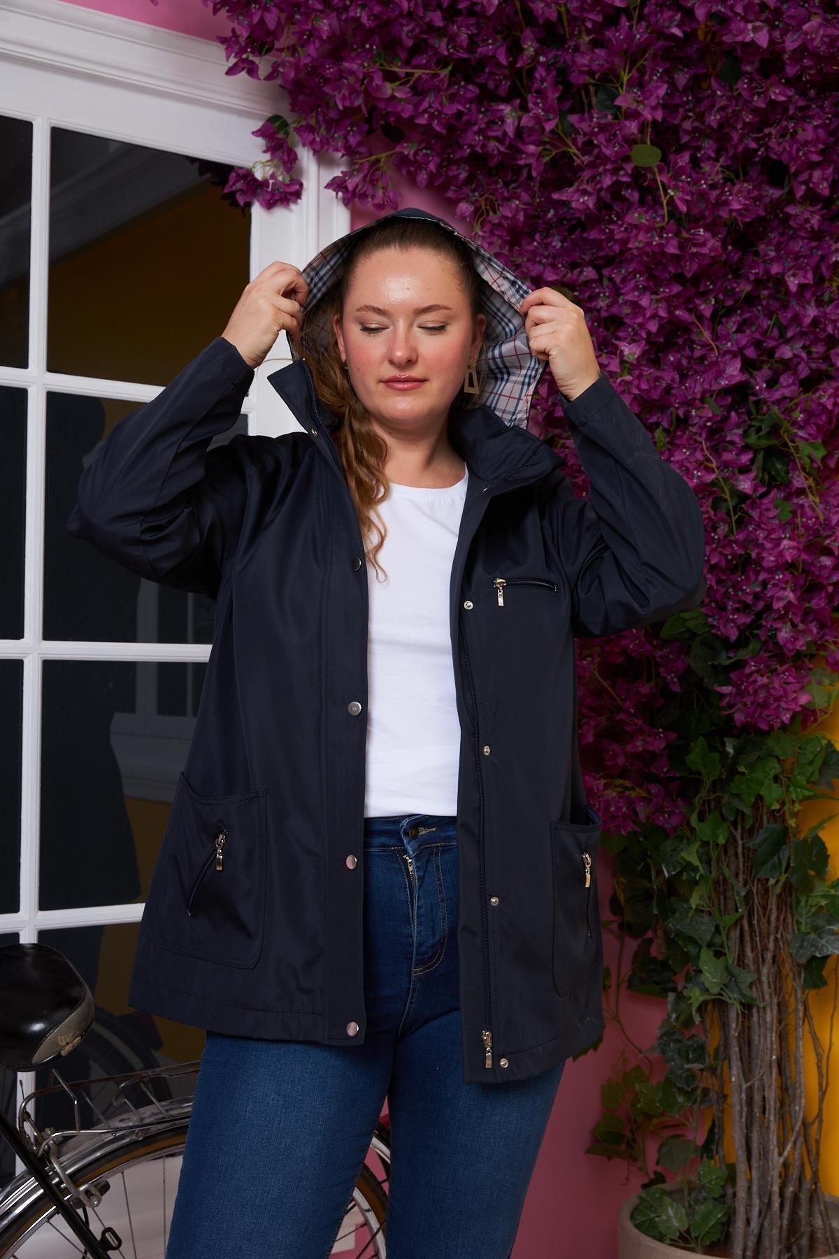 İç Astar Ekose Detaylı Büyük Beden Trençkot LACİVERT
