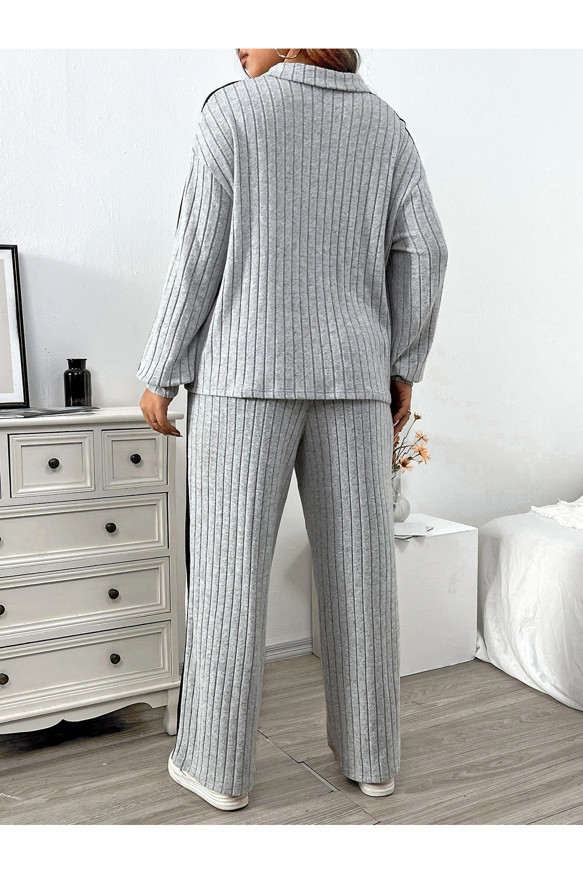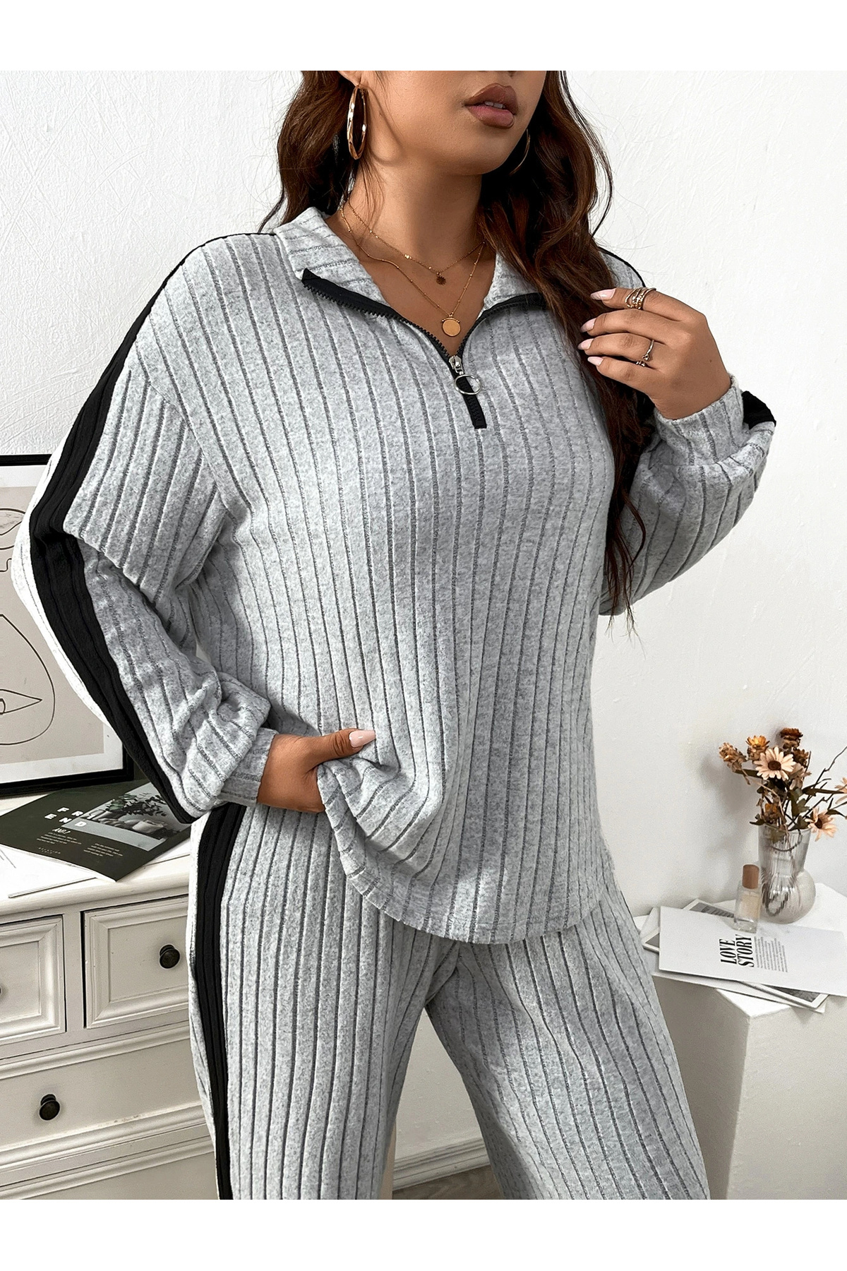 Kadın Büyük Beden Uzun Kollu Fermuarlı Yaka Yüksek Bel İkili Takım
