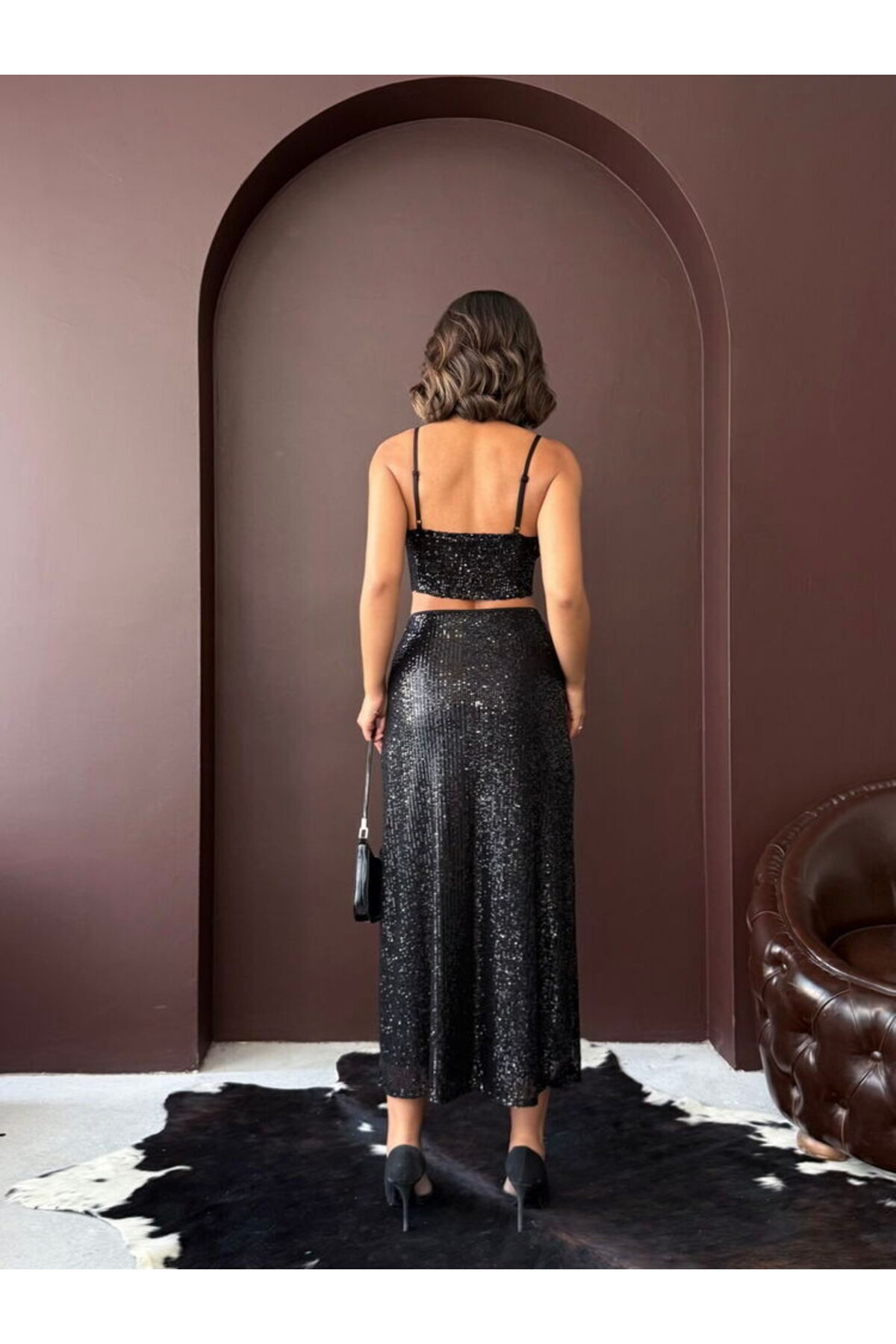 - Tüm sezonlarda rahatlıkla tercih edilebilen payet detaylı crop, yılbaşı temalı özel günlerde şıklığınızı tamamlar.