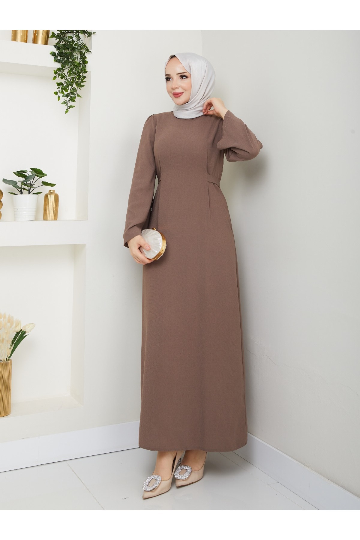 Beli bağcıklı krep Kalem Elbise KİMONO KOL