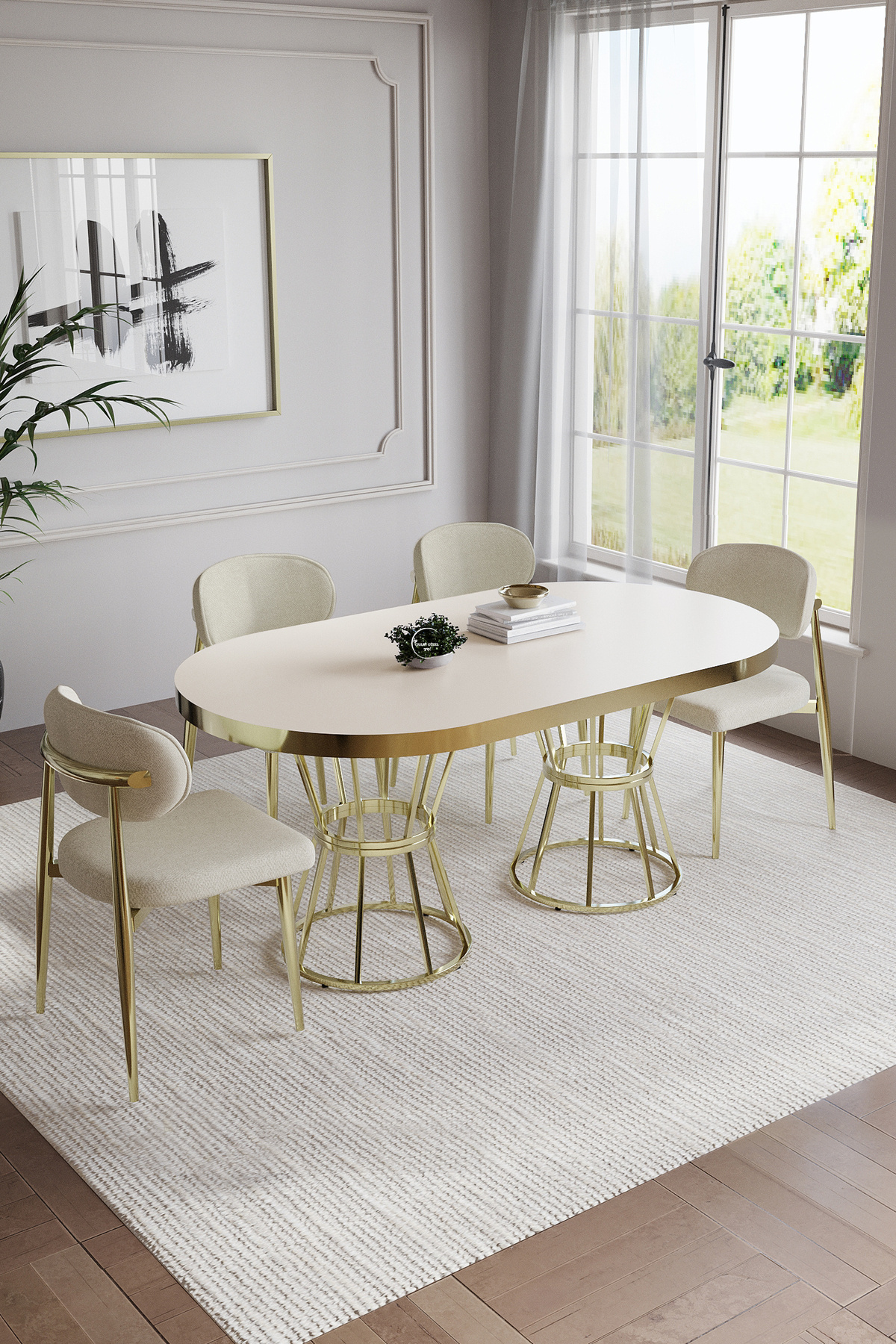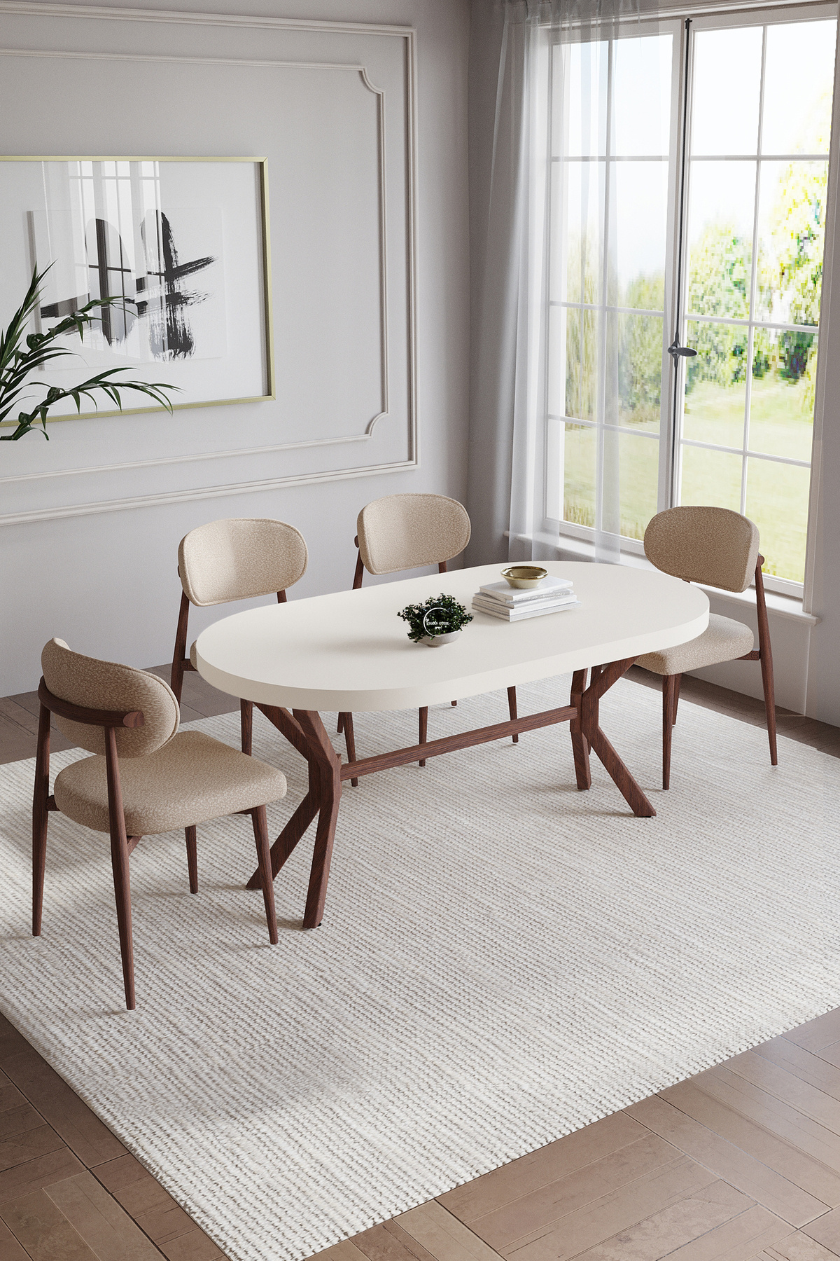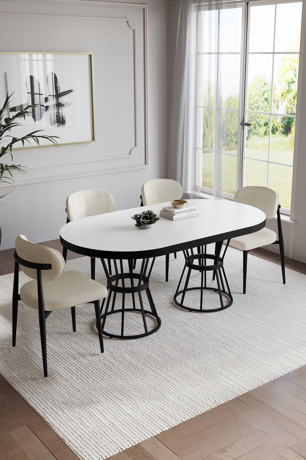 - 140 x 80 cm ölçülerindeki oval masa, 4-6 kişilik konforlu oturma düzeni sunar.