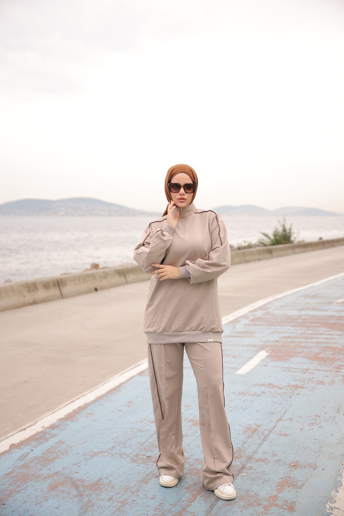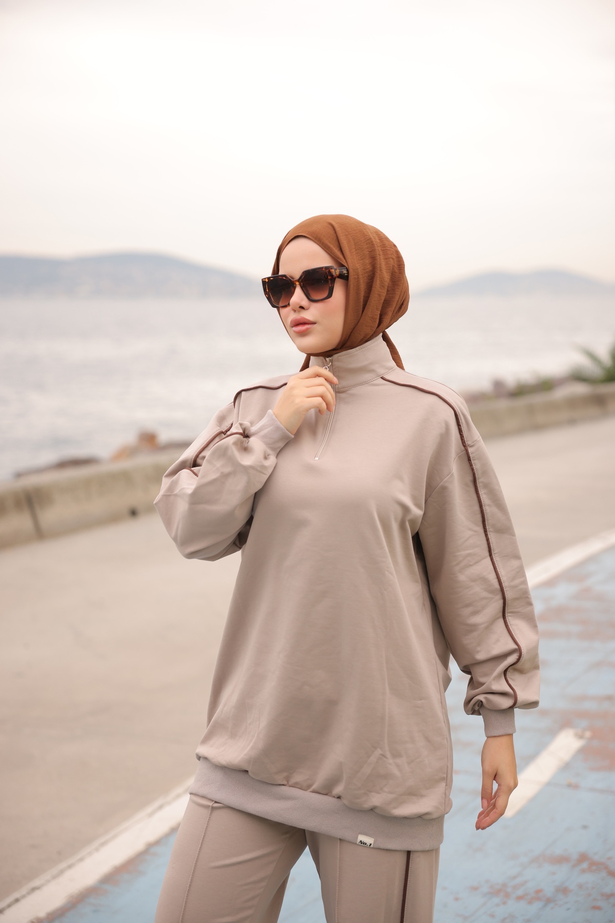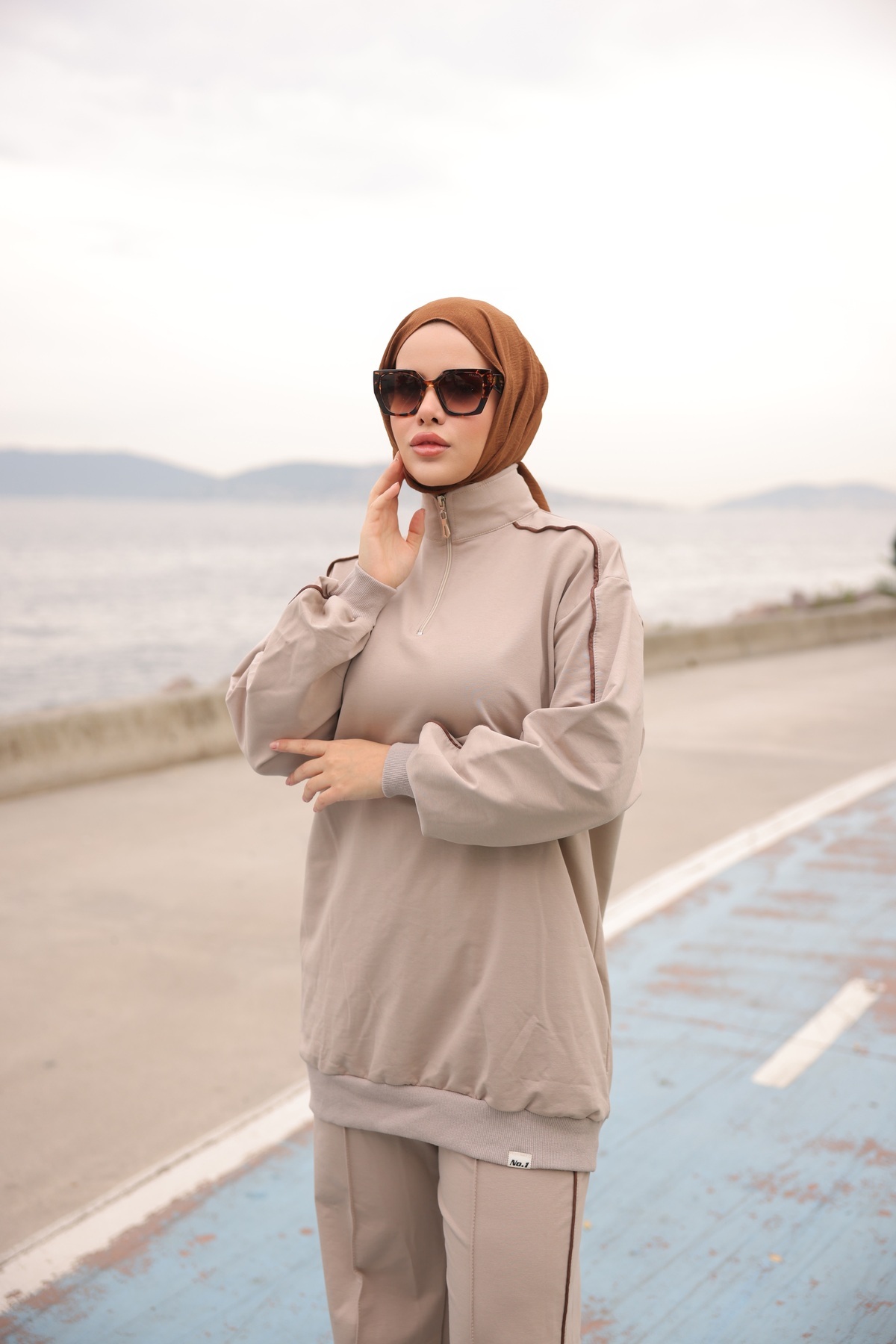 - Dik yaka fermuarlı üst parça, soğuk havalarda ekstra koruma sağlar.