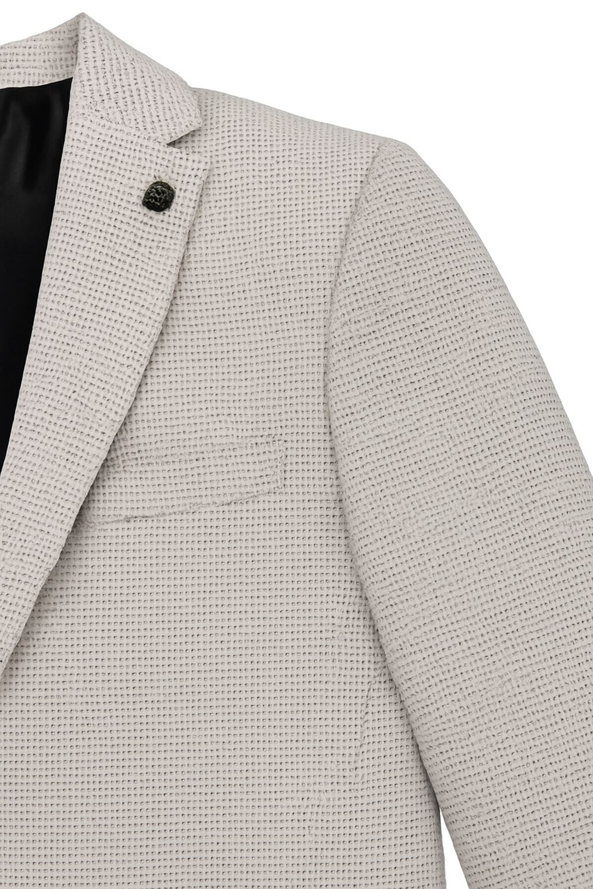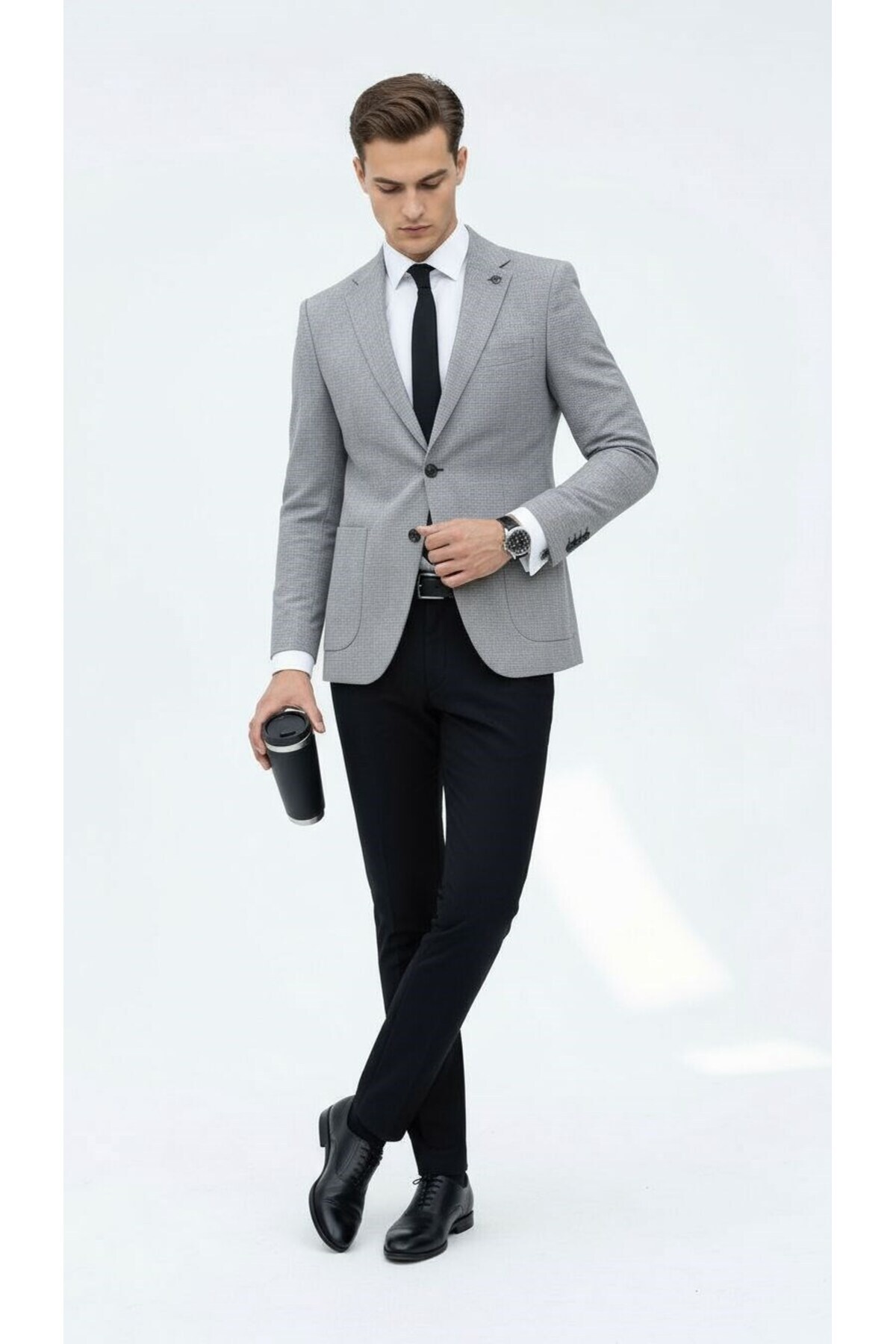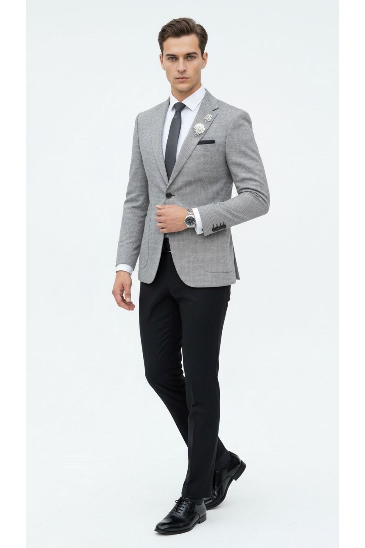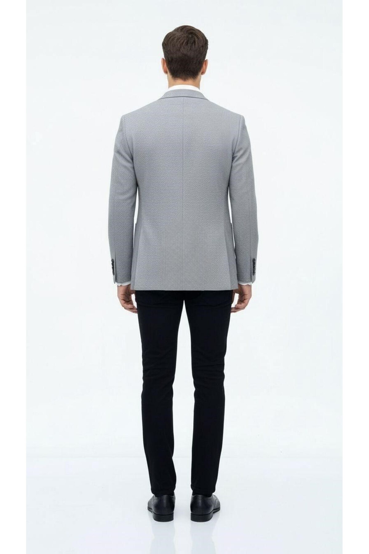 Açık Gri Kırçıllı Erkek Blazer Ceket – Torba Cepli, Çift Yırtmaçlı, Dokulu Premium Kumaş Slim Fit