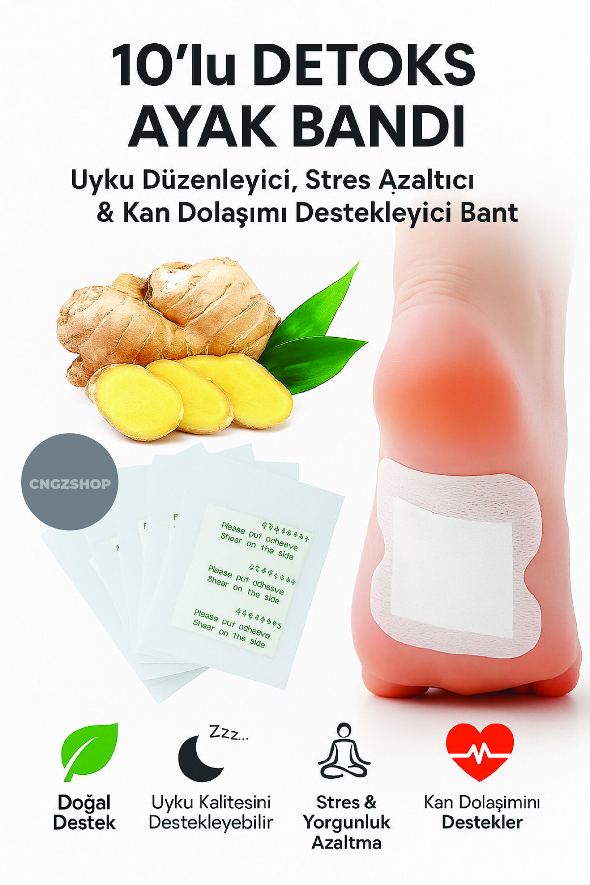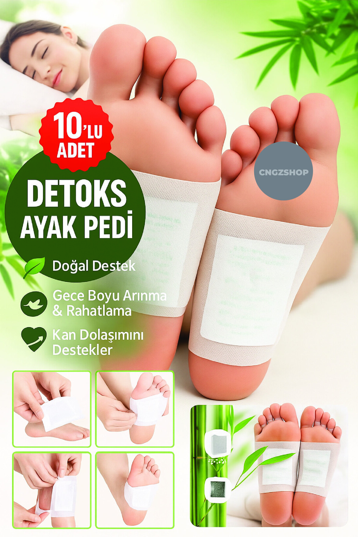 10’lu Detoks Ayak Bakım Pedi – Uyku Düzenleyici, Stres Azaltıcı & Kan Dolaşımı Destekleyici Bant