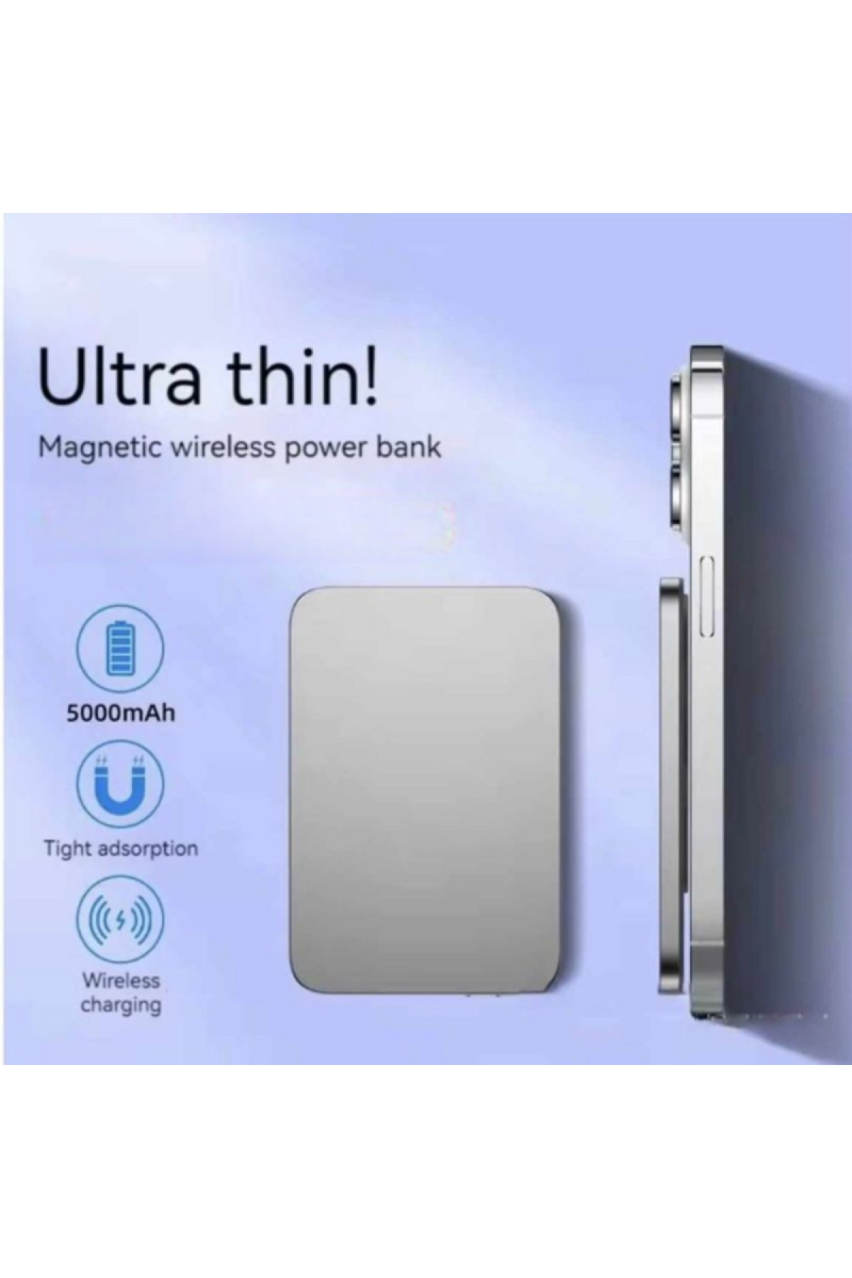 iPhone 16 Pro Max Uyumlu MagSafe 5000mAh Ultra İnce Powerbank Kablosuz Hızlı Şarj-Titanyum Gri