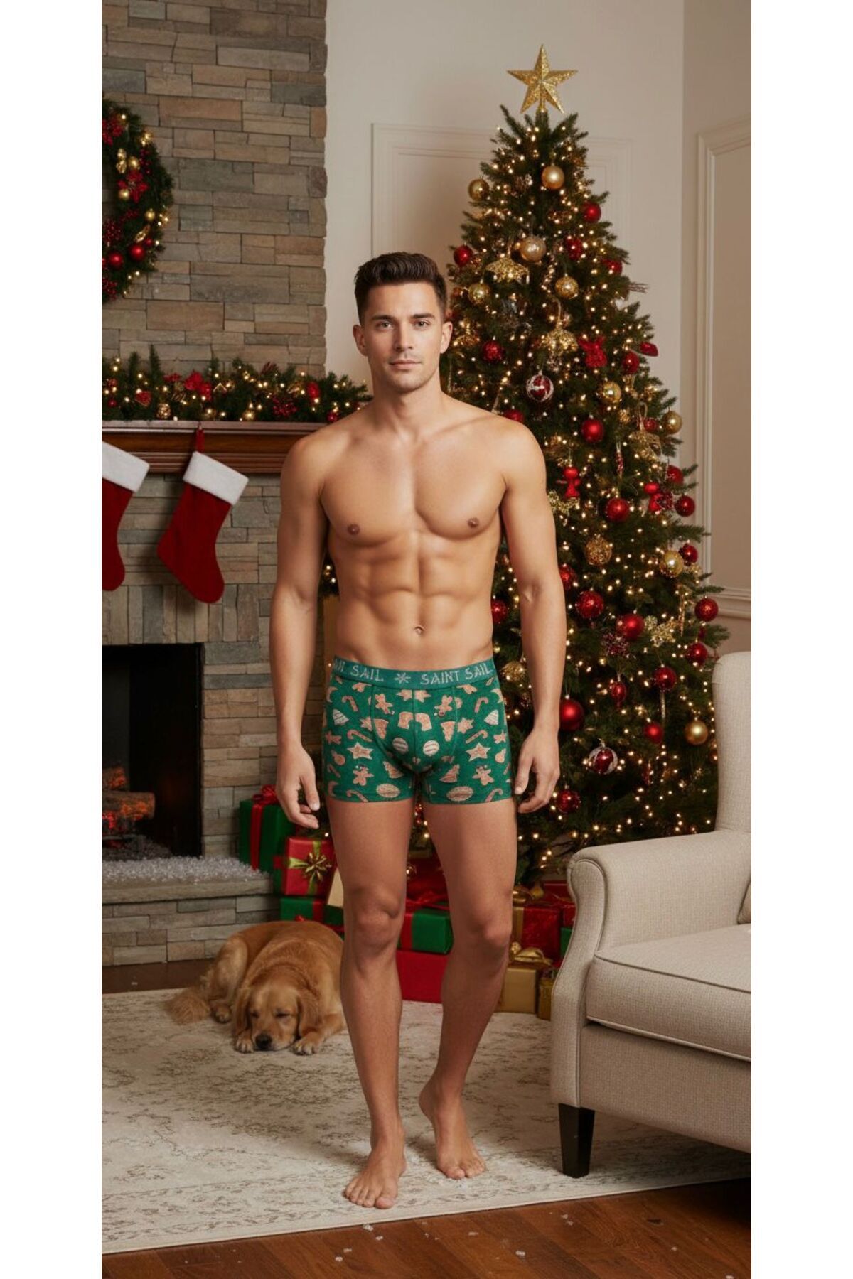 - Yılbaşı ruhunu kutlamak için özel olarak tasarlanmış, yılbaşı temalı baskılı desenleriyle dikkat çeken erkek boxer.