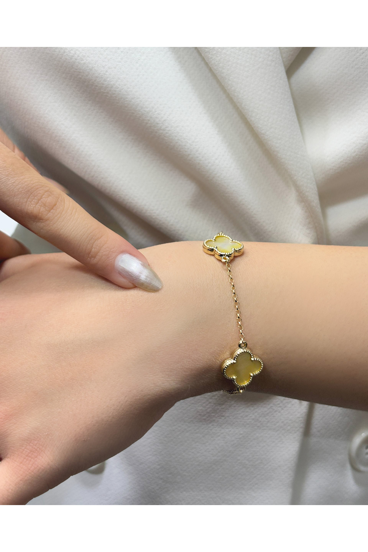 14 Ayar Altın Büyük Sarı Taşlı Yonca Bileklik
