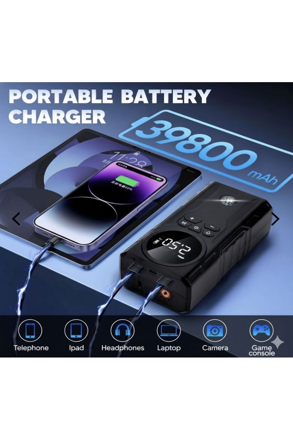 • Powerbank özelliği – Telefon, tablet ve diğer cihazlarınızı USB çıkışı üzerinden şarj edin.