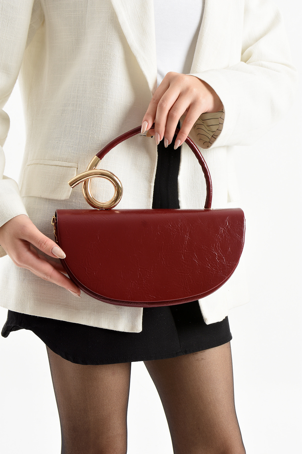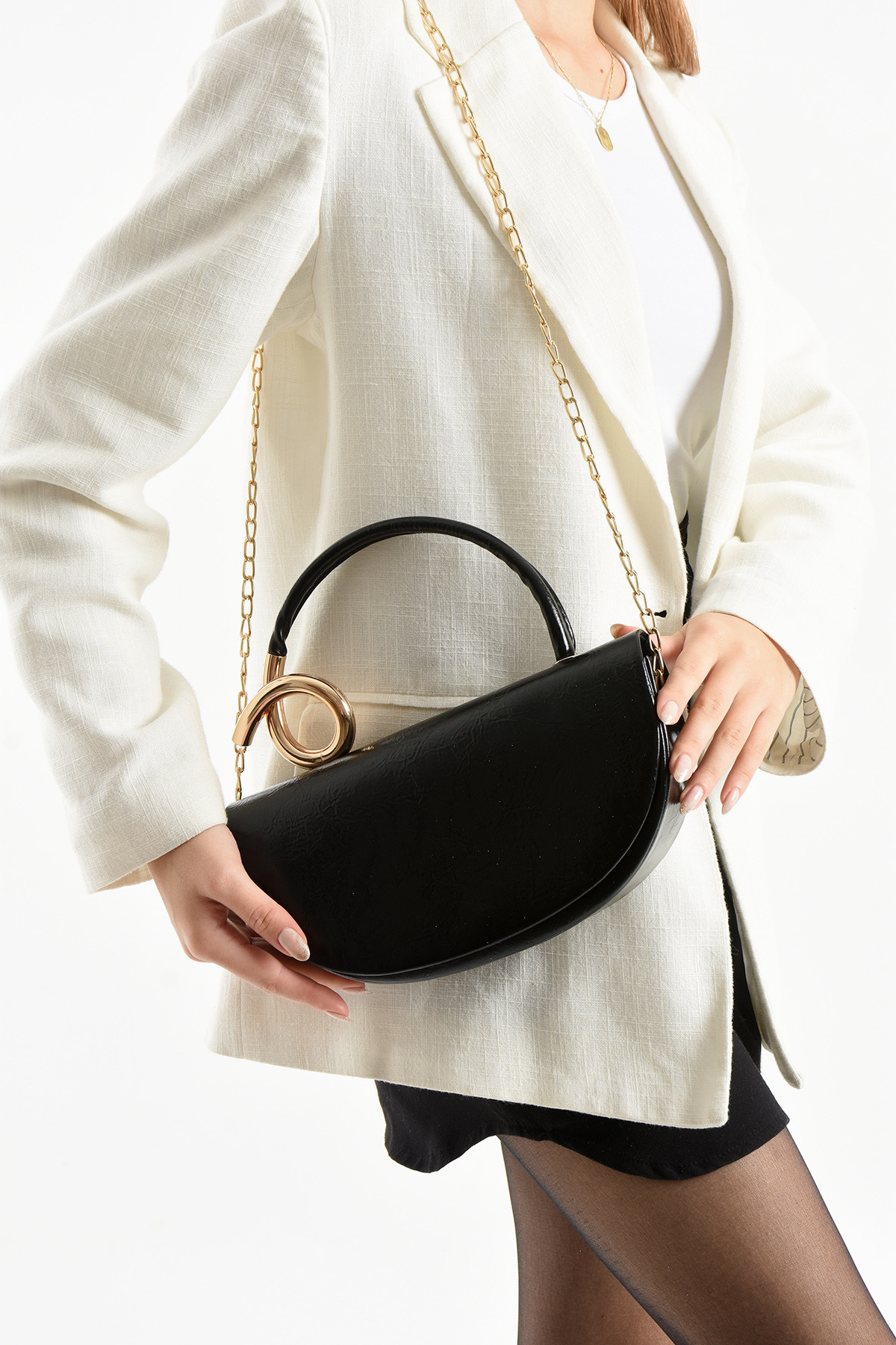 Zarafeti modern detaylarla buluşturan yarım ay formundaki gold aksesuarlı kadın omuz & el çantası, şık tasarımıyla özel günlerden günlük kullanıma kadar her kombine kusursuz uyum sağlar.