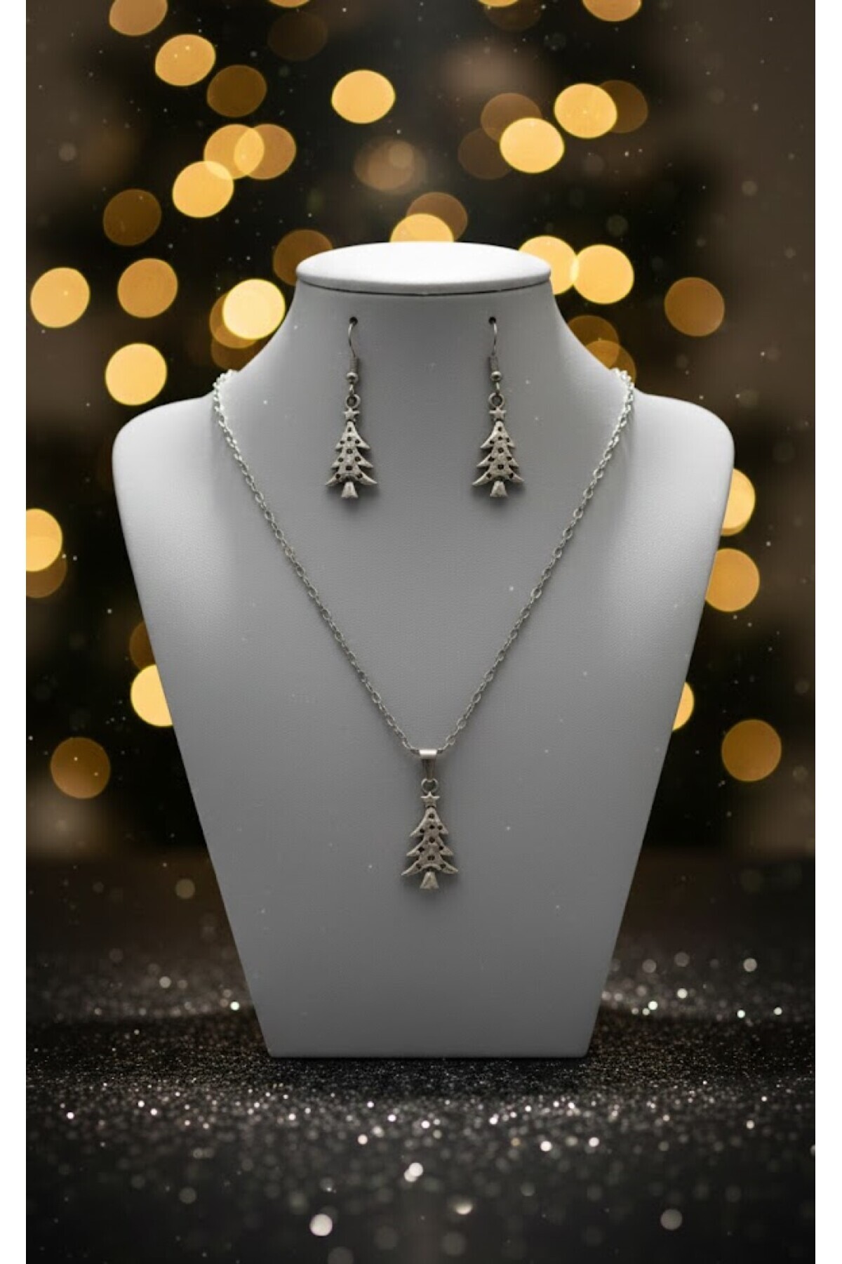 🎄 Gümüş Renk Yılbaşı Ağacı Kolye Küpe 3 Parça Takı Seti Yeni yılın ışıltısını stilinize taşıyın! Yeni yıl ruhunu zarafetle birleştiren bu 3 parçalık takı seti, yılbaşı şıklığını tamamlamak isteyenler için özel olarak tasarlandı.