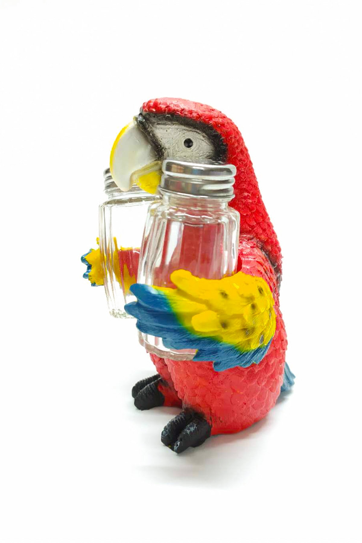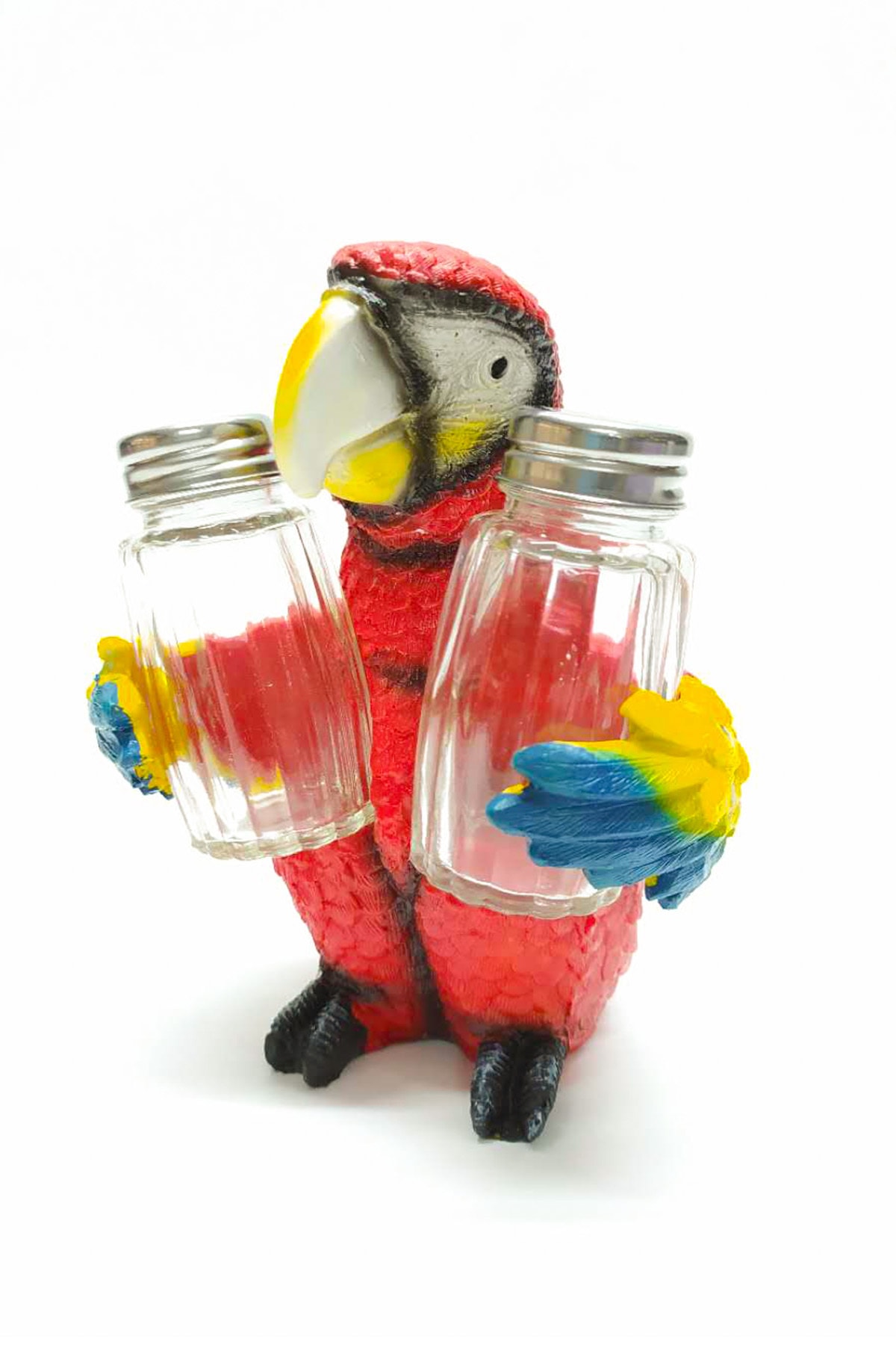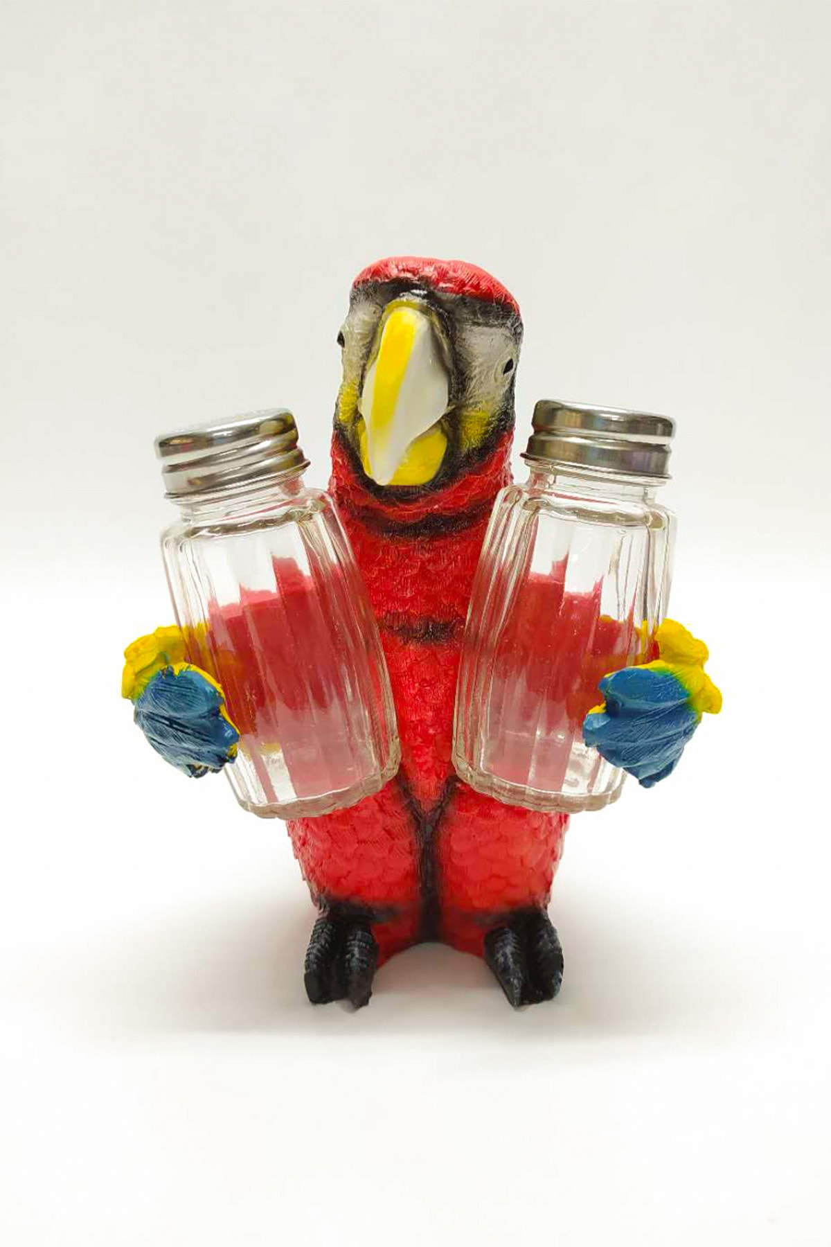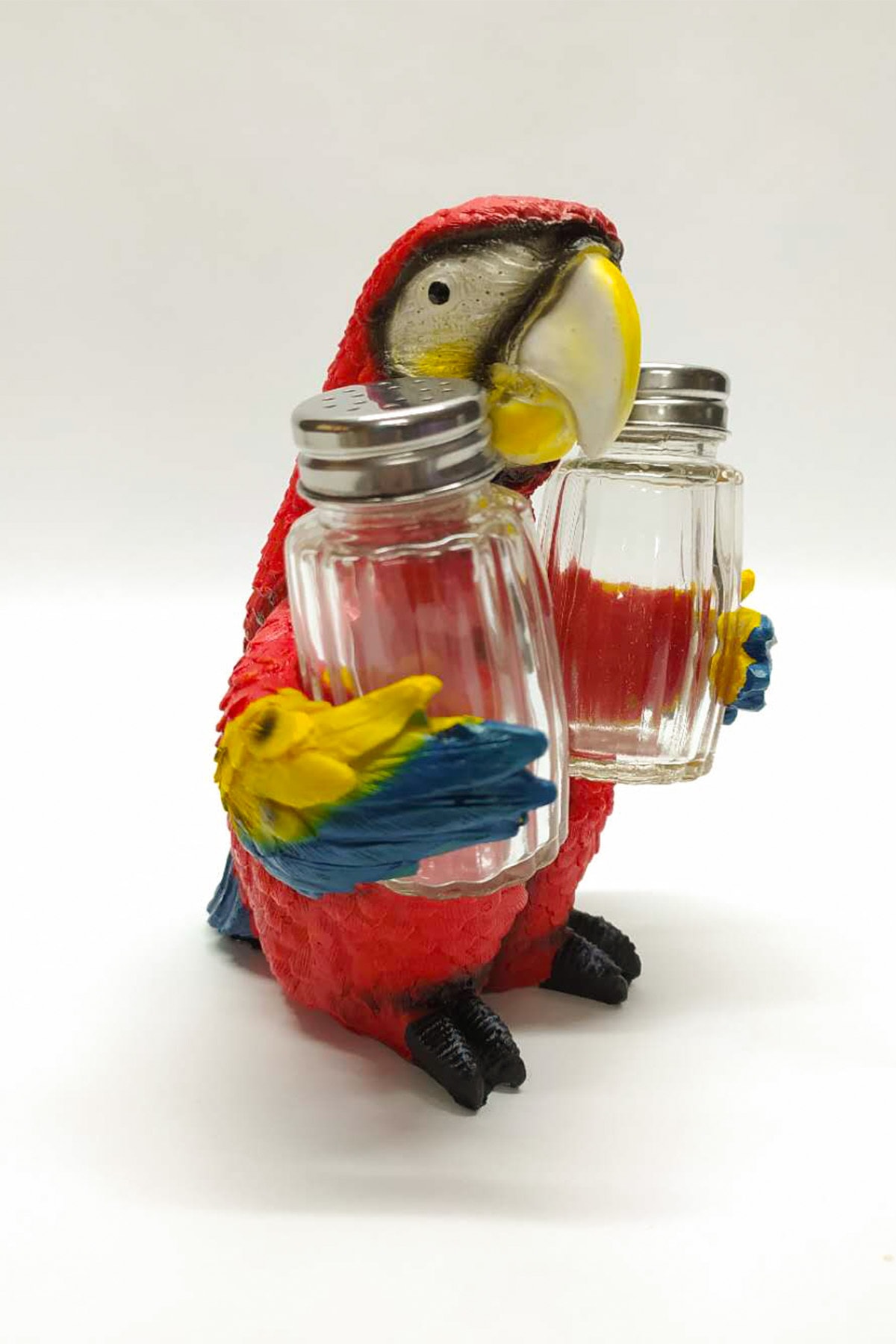 Sevimli papağan kucağında taşıdığı tuzluk ve baharatlıklarla çok tatlı bir tasarım.Görüntüsü ile her yaşta hayranı ve seveni var.