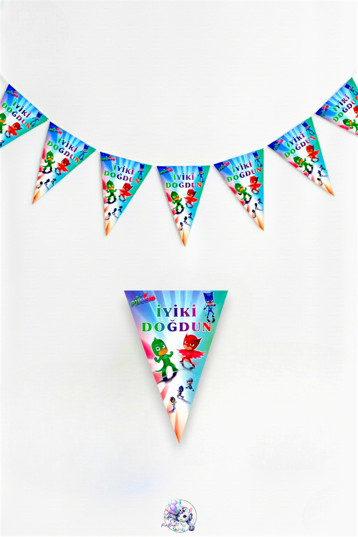 Pijamaskeliler Temalı Doğum Günü ve Parti Flaması