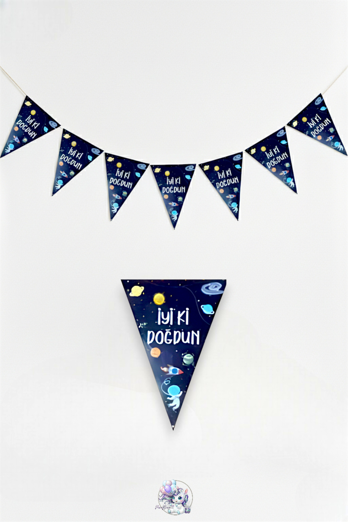 Uzay Temalı Doğum Günü ve Parti Flaması