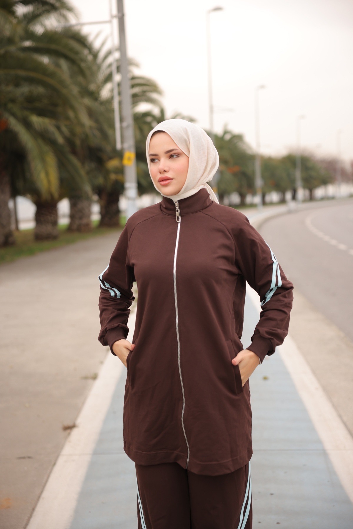 - Rahatlık ve şıklığı bir arada sunan kadın tesettür eşofman takımı, günlük kullanım için idealdir.