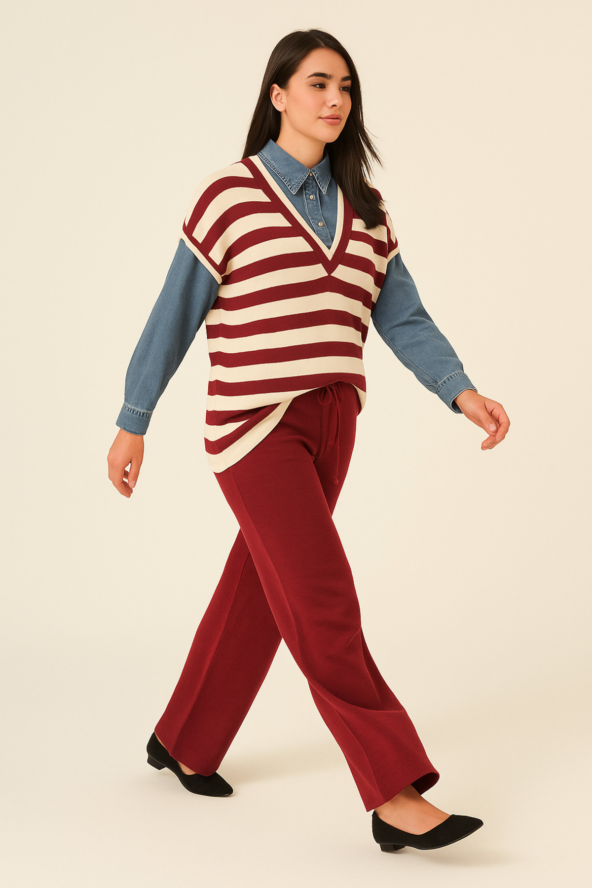 Büyük Beden Kol Yaka Kot Kahverengi İkili Triko Takım