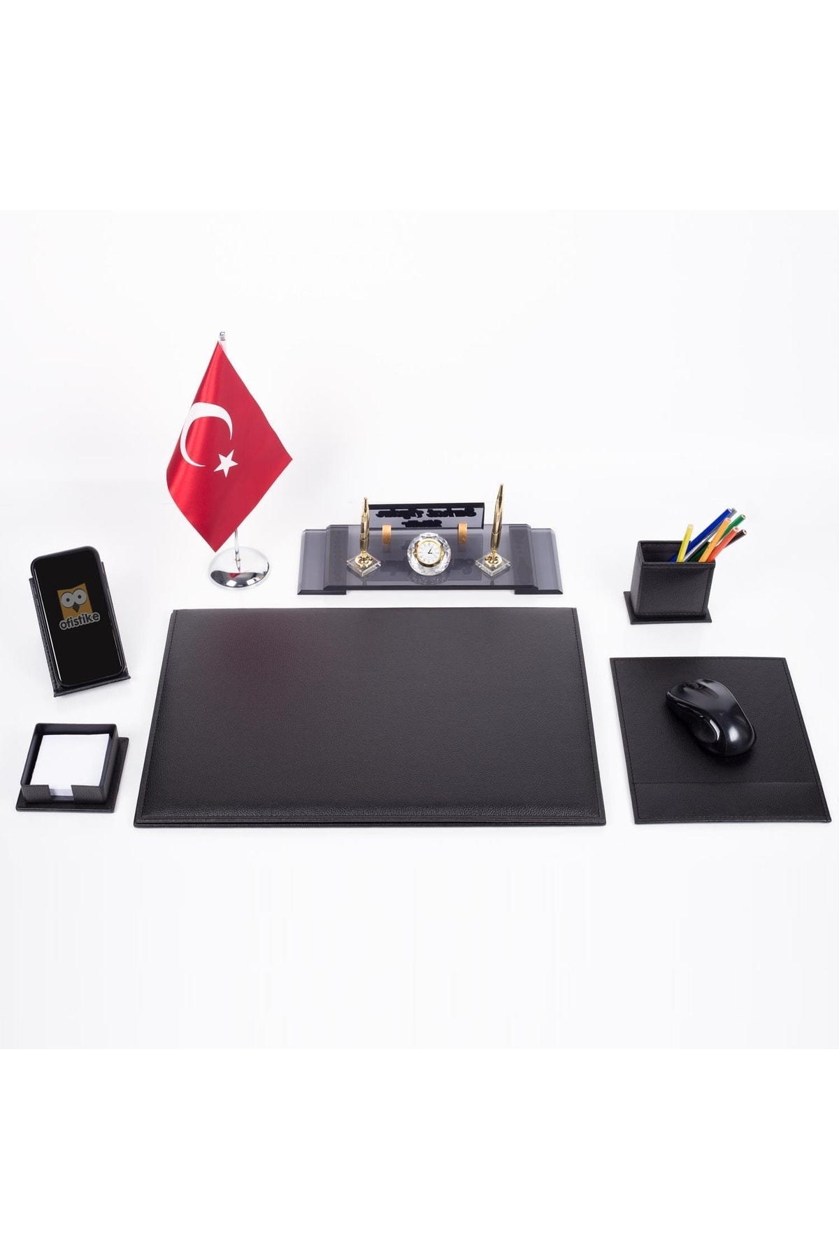 Ürün İçeriğine Dahil Olanlar 1 adet 50x35 ebatında sümen 1 adet not kağıtlığı 1 adet kalemlik 1 adet mousepad 1 adet telefonluk 1 adet 33x11cm çift kalemli kristal masa isimliği 1 adet Türk Masa Bayrağı (15x22cm) Sipariş Öncesi Bilmeniz Gerekenler Ünvan kısmına dilediğiniz ünvanı (Müdür, Hakim, Savcı, Avukat, Yazı İşleri Müdürü vb) yazdırabilirsiniz.