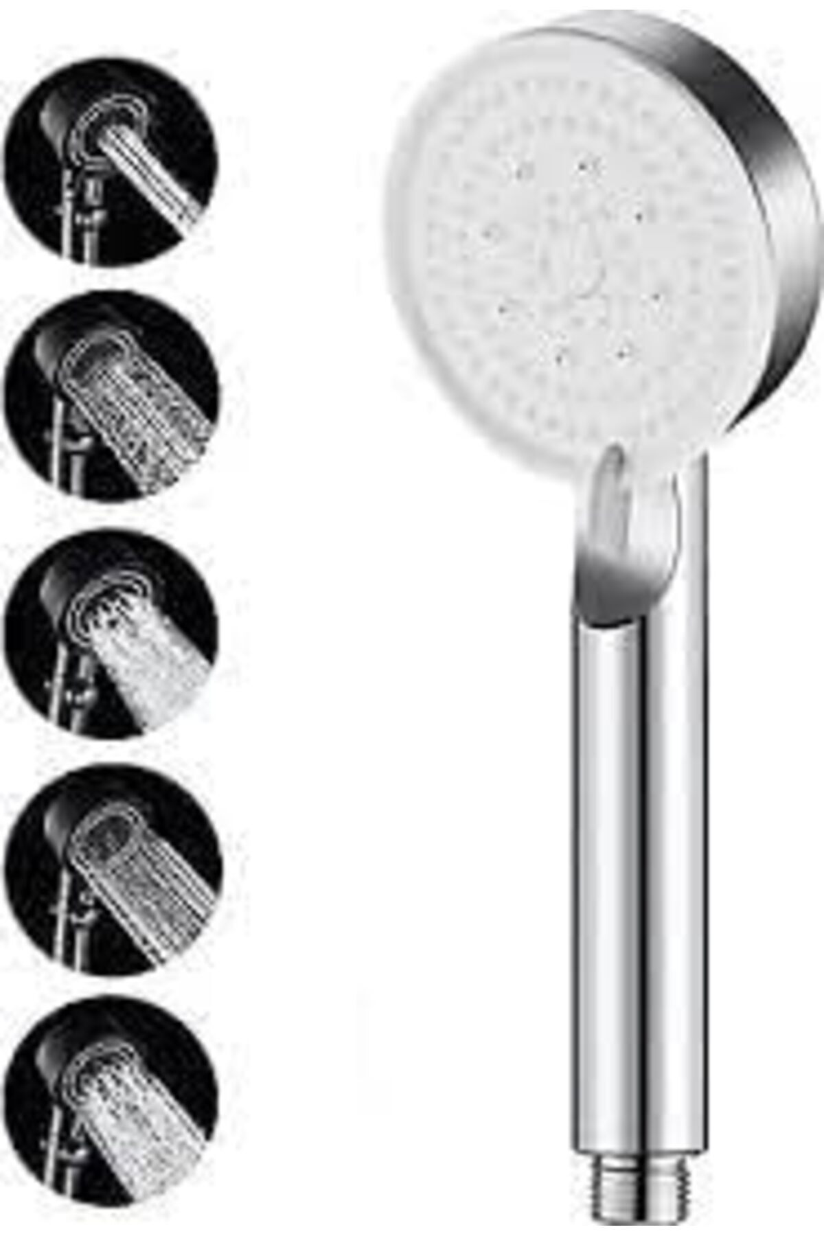 ABS 5 Fonksiyonlu Yüksek Basınçlı Duş Başlığı Mafsalı 150 Cm Hortum beyaz Duş Seti
