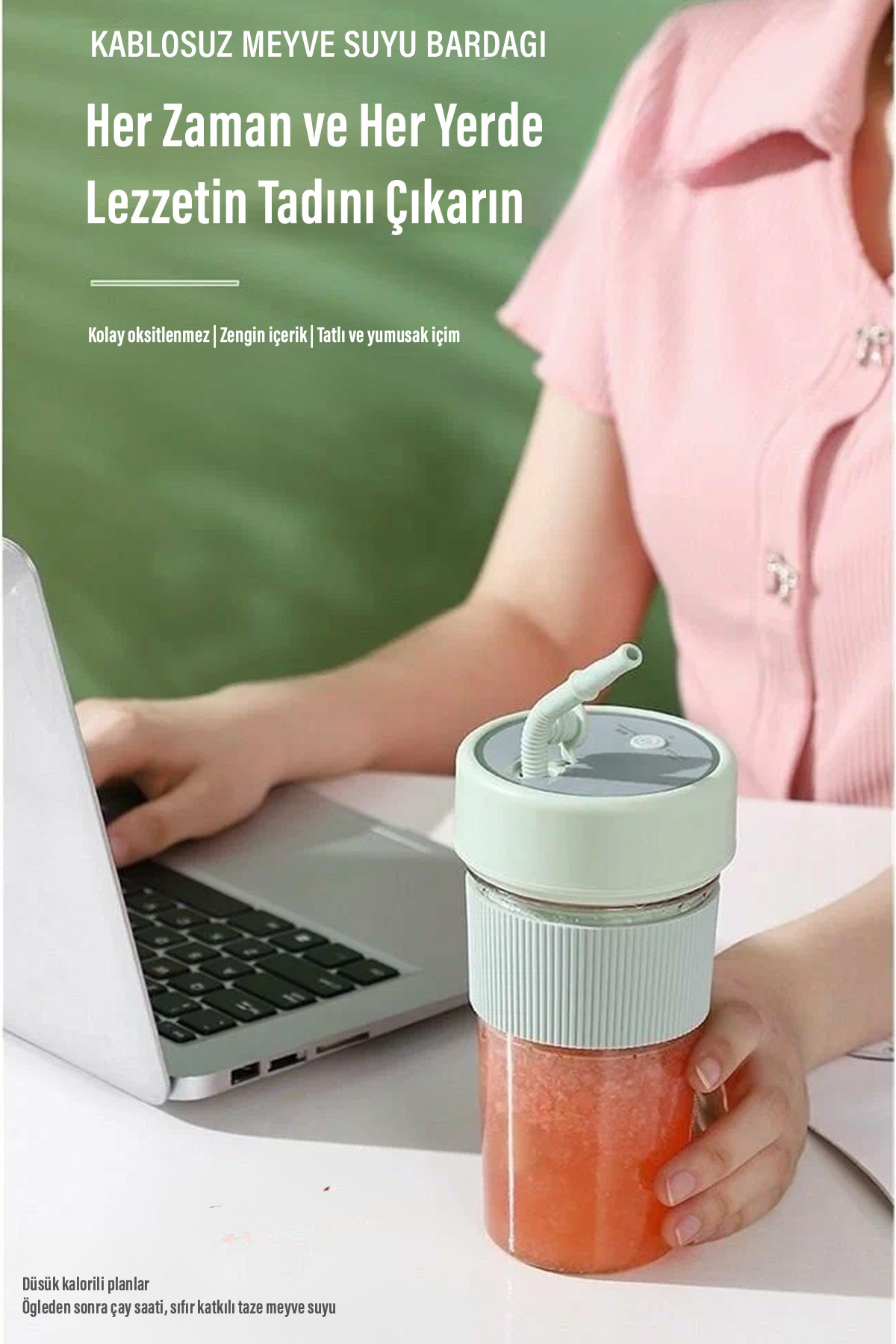 Şarjlı Taşınabilir Mini Bardaklı Smoothie Blender 350ml Kendinden Pipetli 6 Bıçaklı Meyve Sıkacağı 6 Bıçaklı