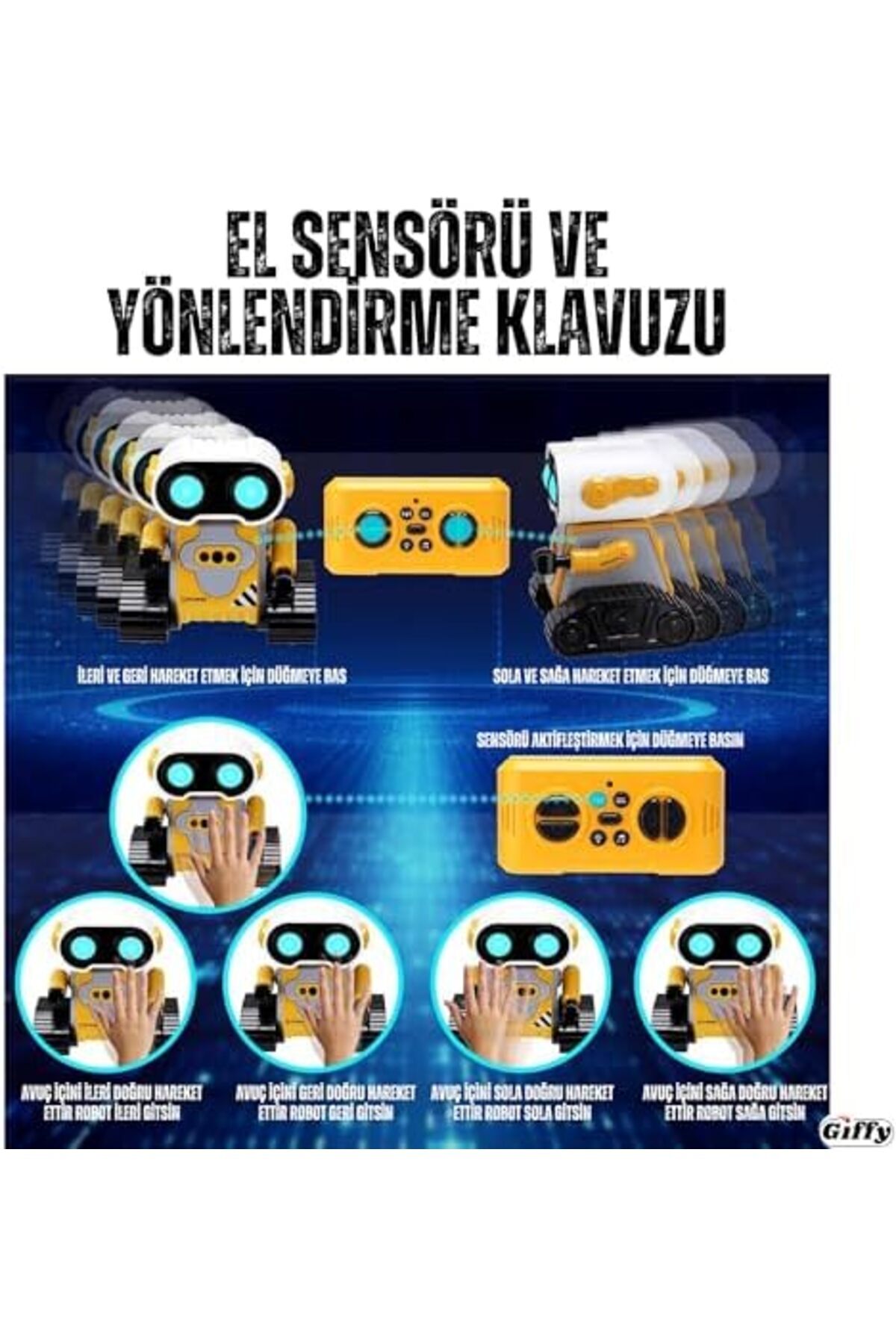 Oyuncak Uzaktan Kumandalı El Sensörlü Akıllı WALL-E Dahili Şarjlı Işıklı Sesli FULL Fonksiyonlu El Hareketlerini Algılayabilen Farklı Işık Kombinasyonlu Akıllı RC (SARI)