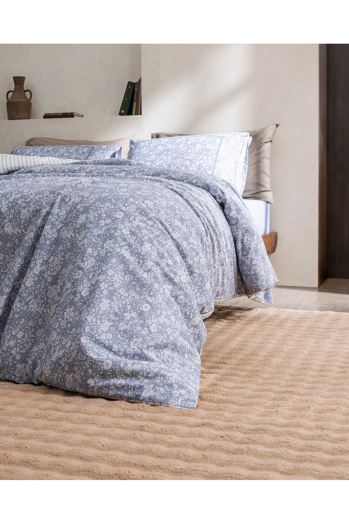 Suzanne Tek Kişilik %100 Pamuk Lastikli Ranforce Baskılı Nevresim Takımı - Mavi