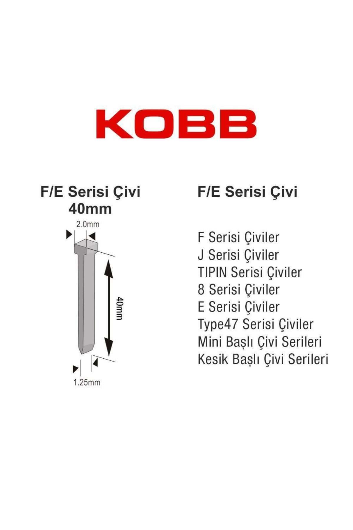 KOBB FE Serisi Çiviler F Serisi Çiviler J Serisi Çiviler TIPIN Serisi Çiviler 8 Serisi Çiviler E Serisi Çiviler Type47 Serisi Çiviler Mini Başlı Çivi Serileri Kesik Başlı Çivi Serileri Standart İçerik: 2500 Adet Galvaniz Kaplı 40mm Ağır Hizmet Tipi Kesik Başlı Çivi