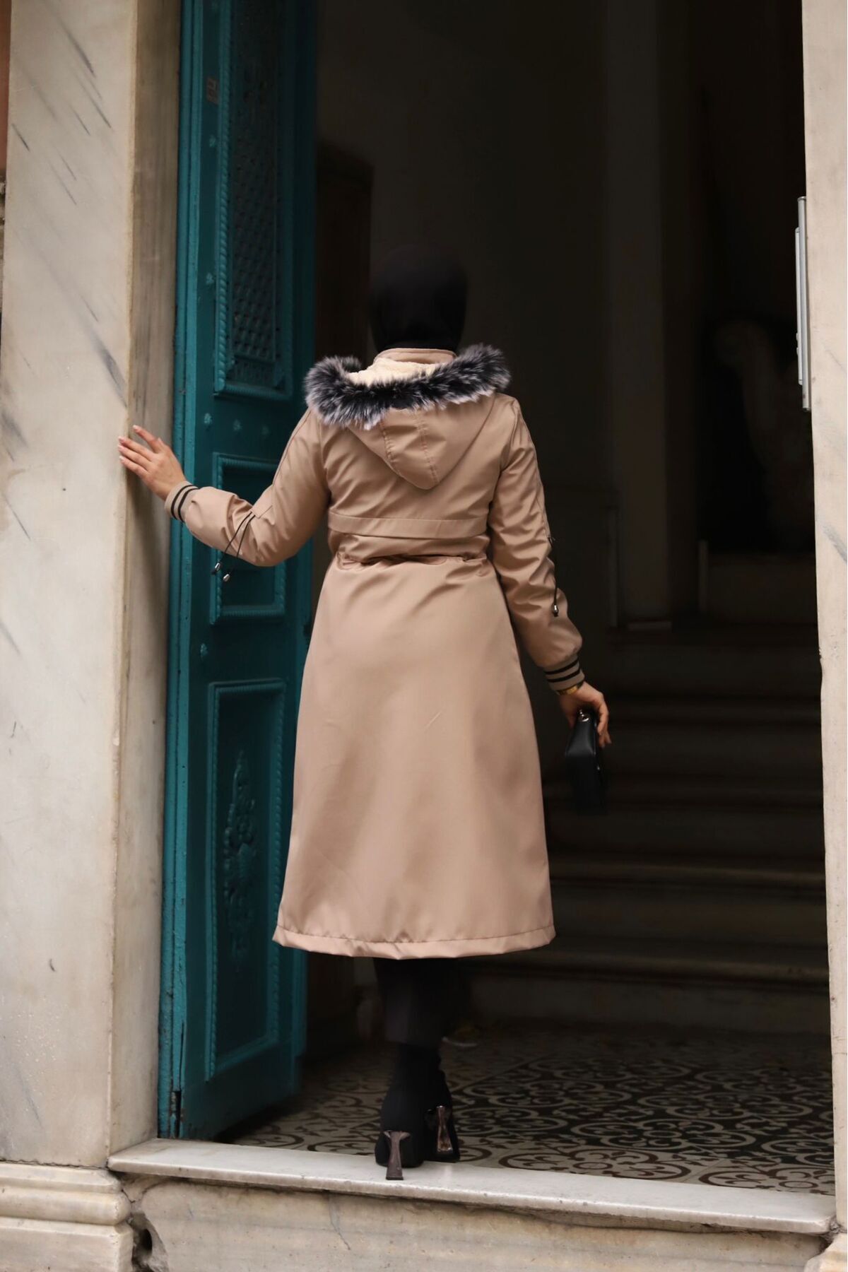 - Uzun kol boyu ve kapüşonlu yaka tipi ile baş ve boyun bölgesini soğuktan korurken, fermuarlı kapama şekli kolay giyip çıkarma imkanı tanır.
