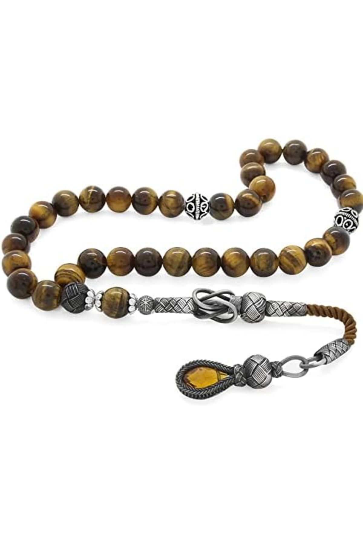 Lvn 1000 Ayar Gümüş Kazaz Püsküllü Küre Kesim Kaplangözü Doğaltaş Tesbih (M-2) 1181191