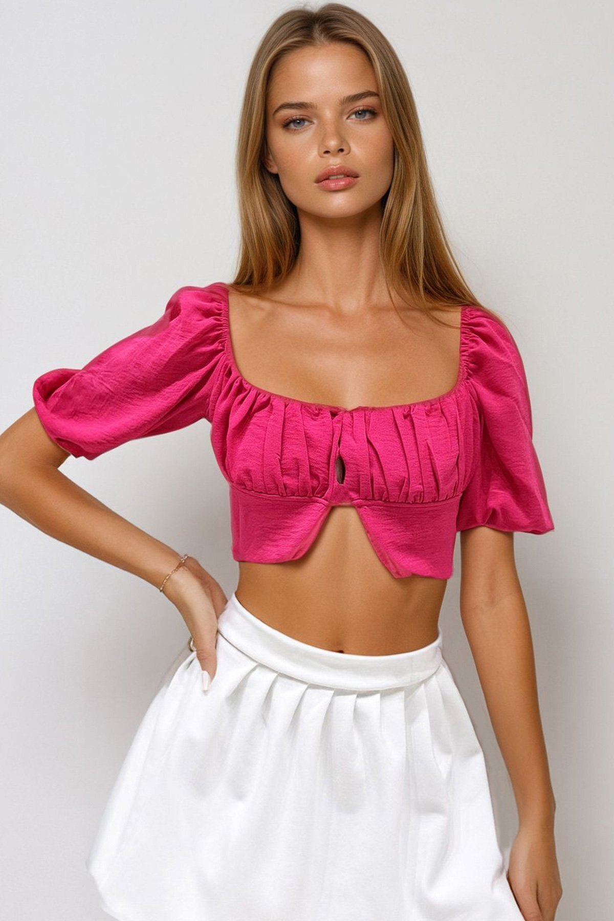 Feminen detaylarıyla öne çıkan bu kadın büstiyer, kare yaka formu ve büzgü detayıyla romantik bir görünüm sunar.