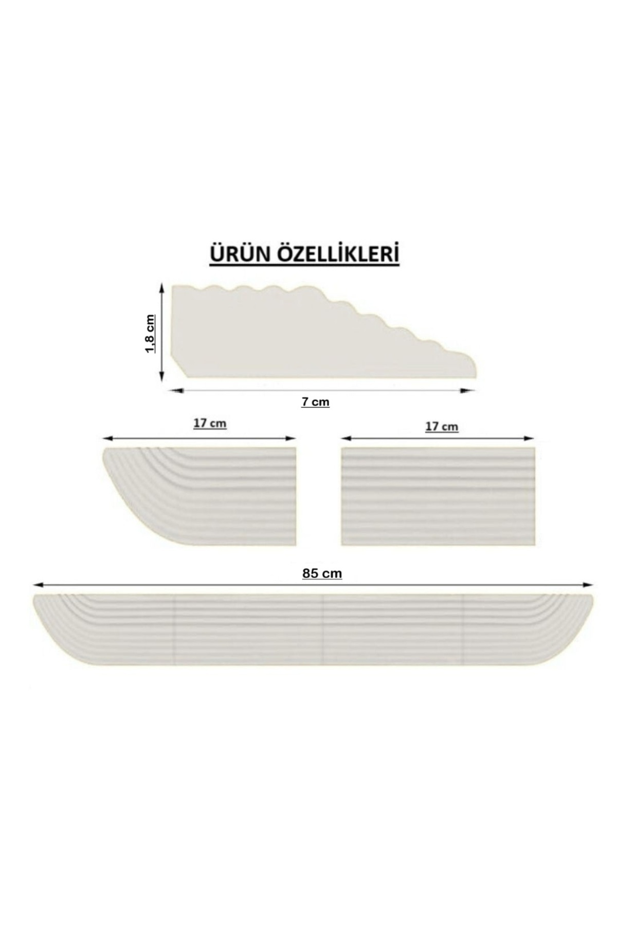 Ürün Boyutları: 1,8 cm yüksekliğinde 85 cm uzunluğunda ve 7 cm genişliğinde kompakt tasarım