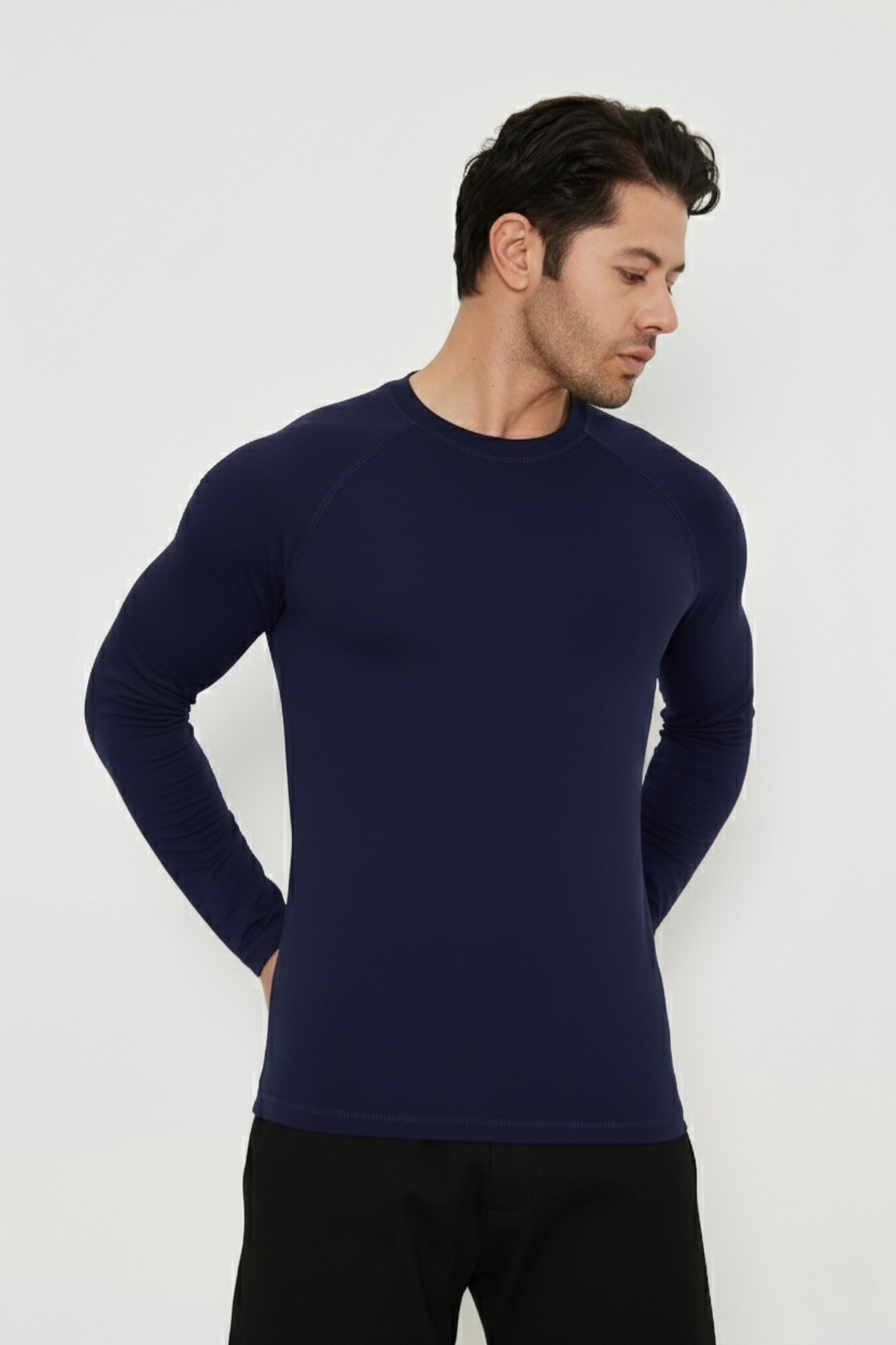 Erkek Lacivert Uzun Kollu Compression Tişört Slim Fit Spor Fitness Gym