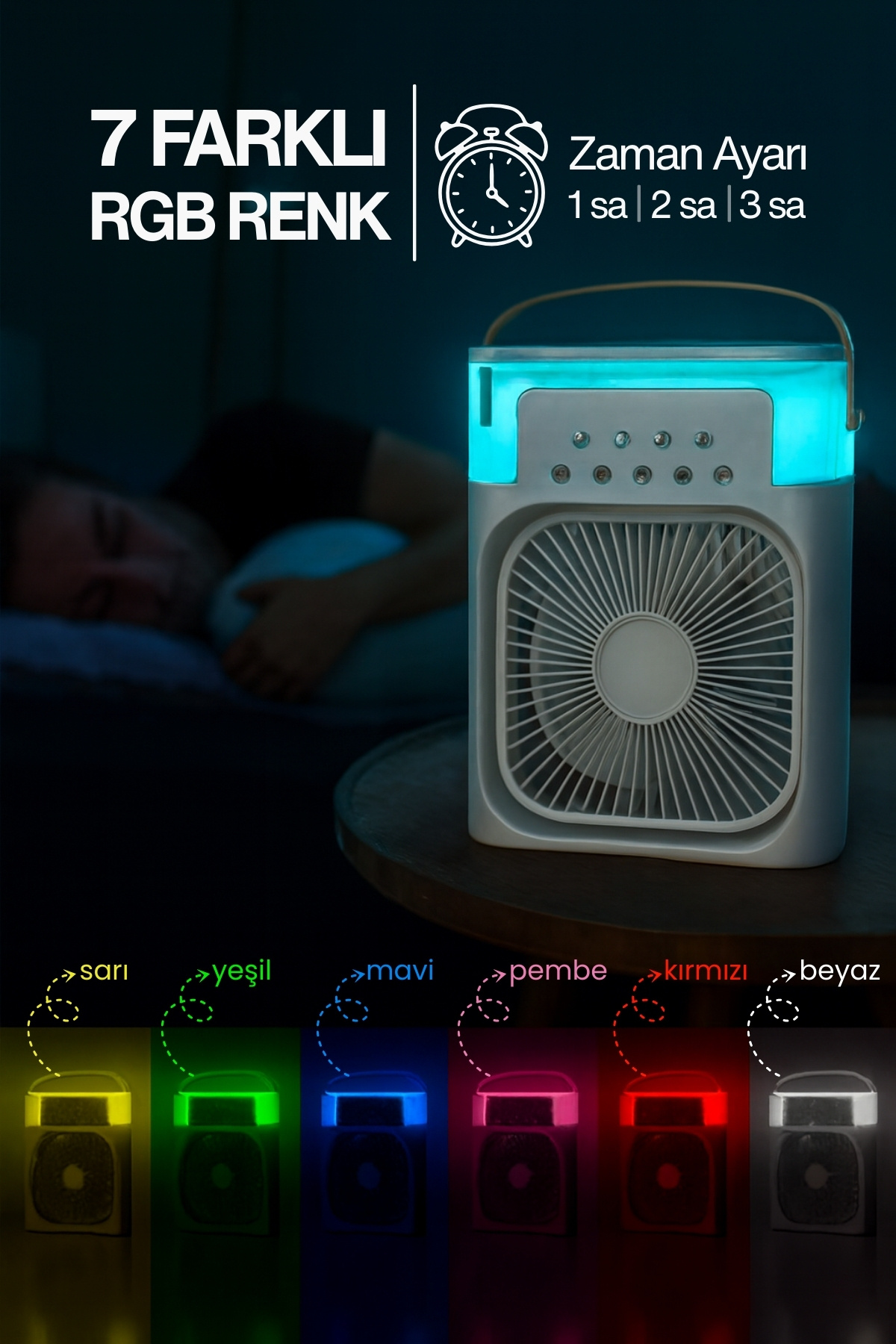 Masaüstü Taşınabilir Buzlu Vantilatör Su Soğutmalı RGB Led Işıklı Soğutucu Fan Air Cooler Fan