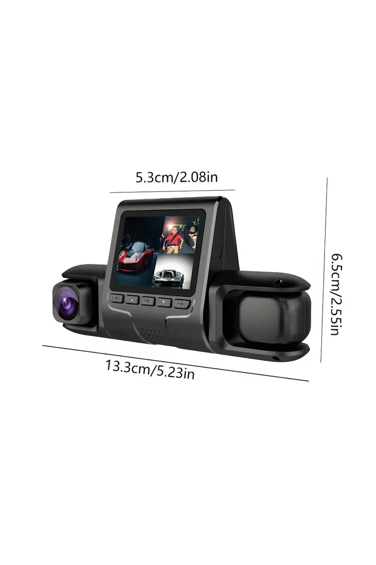 3 Kameralı Araç İçi Kayıt Kamerası - 360° Geniş Açı Full HD Gece Görüşlü Araç Kamerası