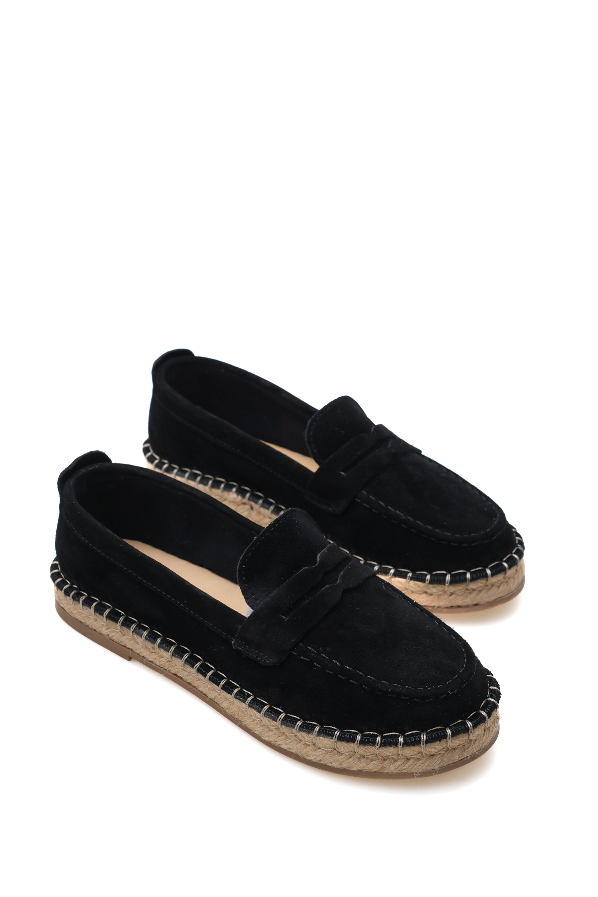 Kadın Hakiki Deri Süet Hasır Taban Espadril
